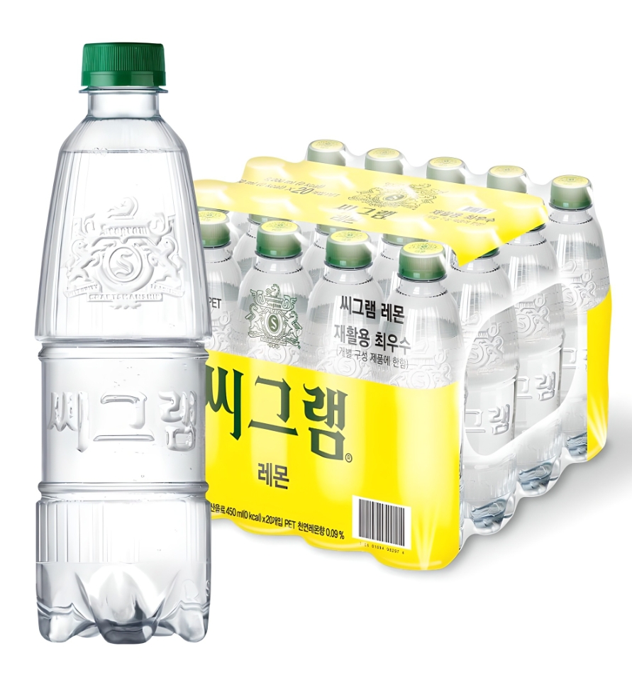 \'씨그램 레몬 무라벨 탄산수\'는 코카-콜라사에서 출시한 제품으로, 환경 보호를 위한 \'무라벨(라벨프리)\' 포장이 특징인 탄산수입니다.