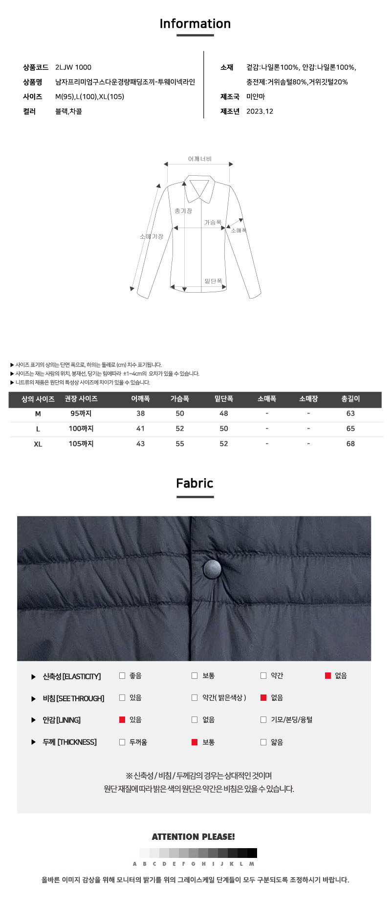 세탁방법 및 취급시 주의사항 제품 상세정보 참고