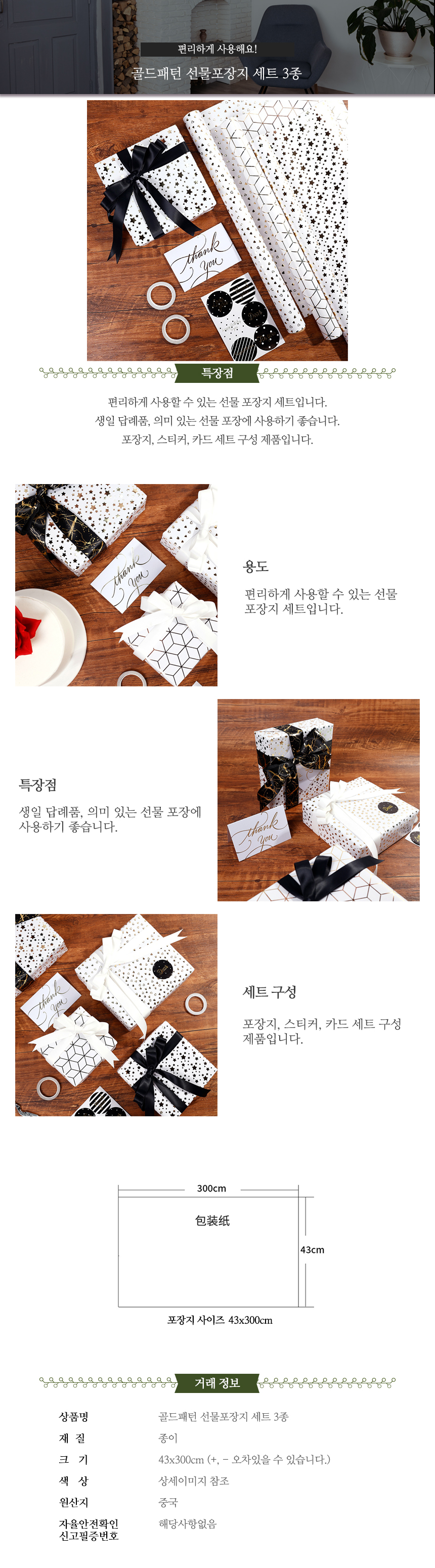 ABM골드패턴 선물포장지 세트 3종