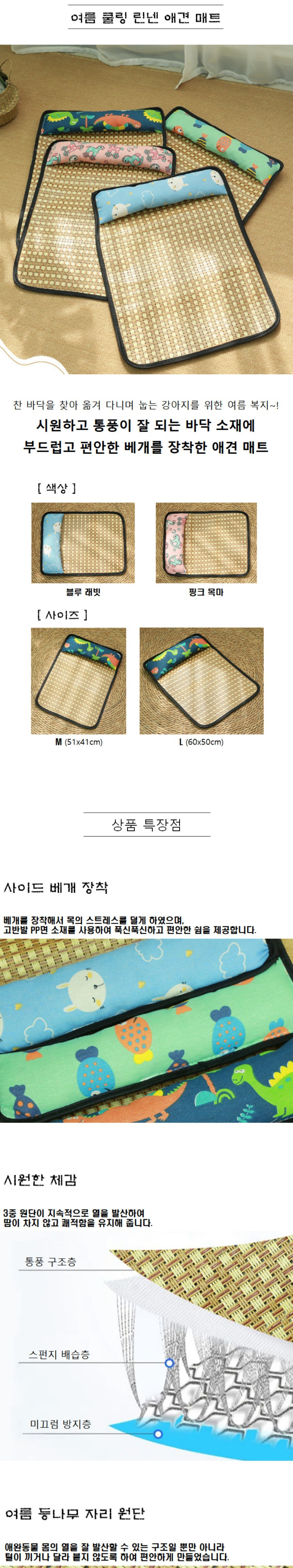 여름 반려동물 강아지 고양이 대나무 쿨 방석 쿨링 매트_L
