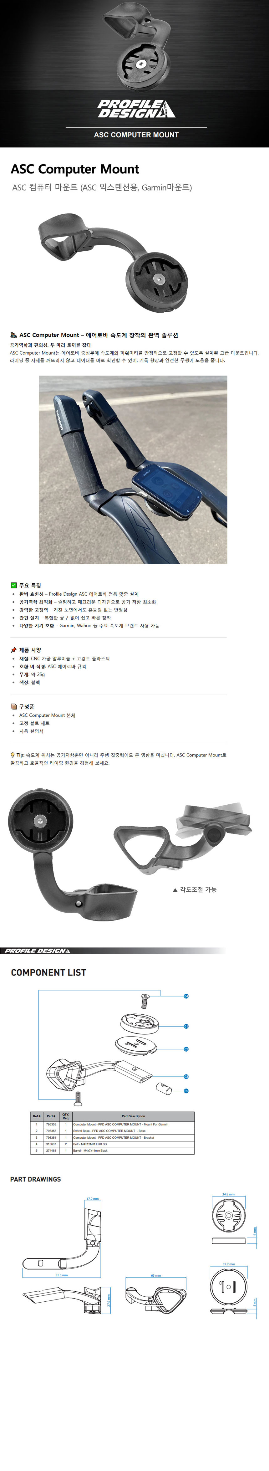 프로파일디자인 ASC 컴퓨터 마운트(ASC 익스텐션용 가민)