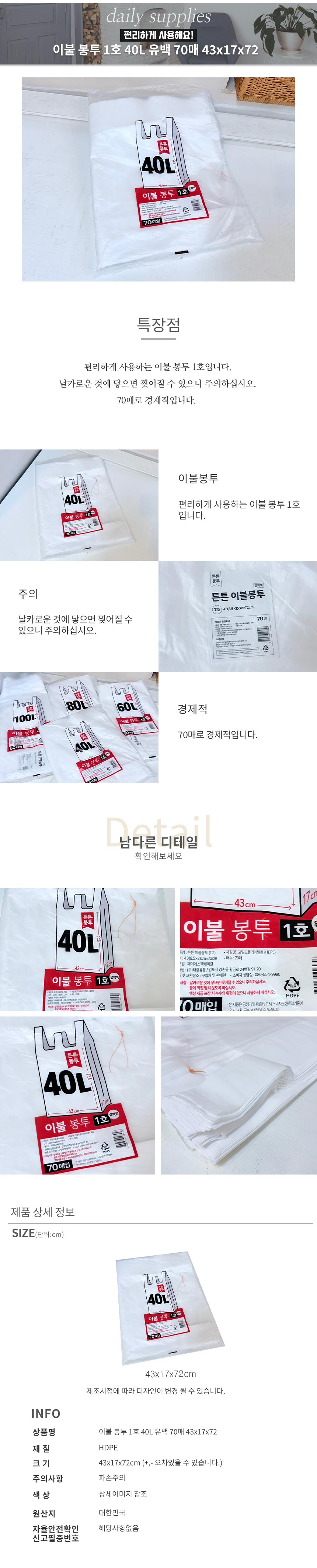 이불 봉투 1호 40L 유백 70매 43x17x72