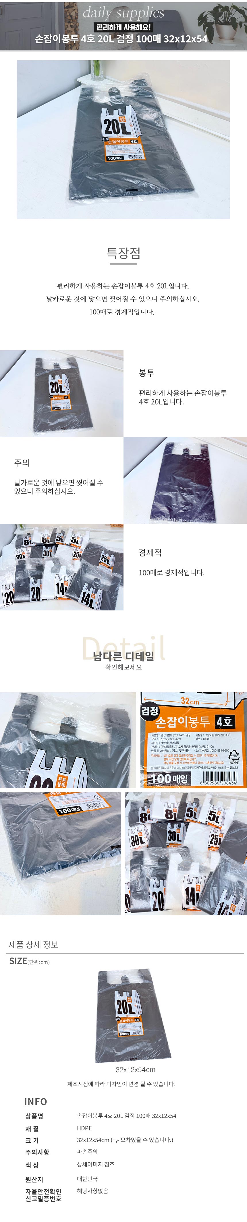 손잡이봉투 4호 20L 검정 100매 32x12x54