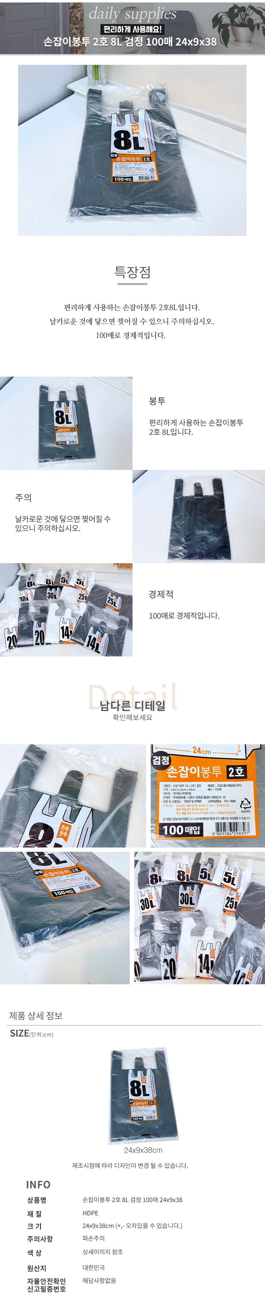 손잡이봉투 2호 8L 검정 100매 24x9x38
