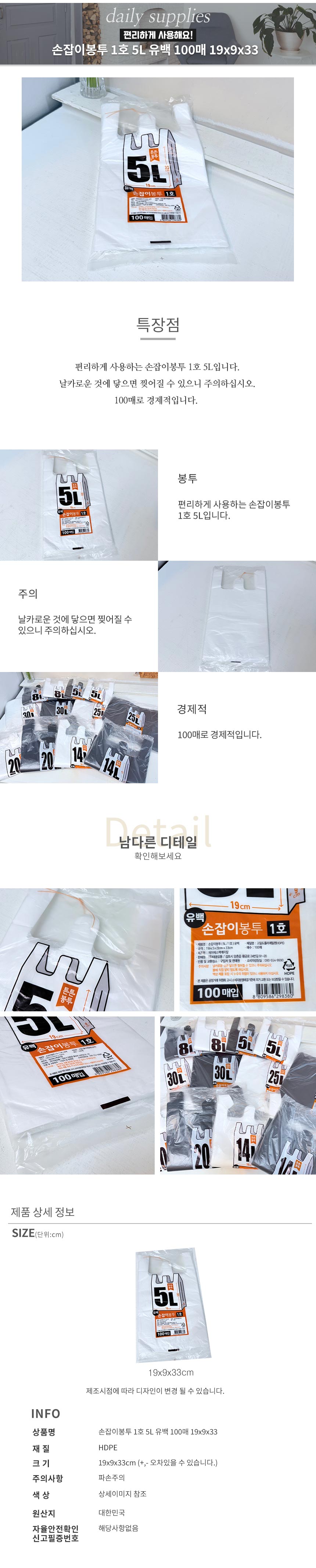 손잡이봉투 1호 5L 유백 100매 19x9x33