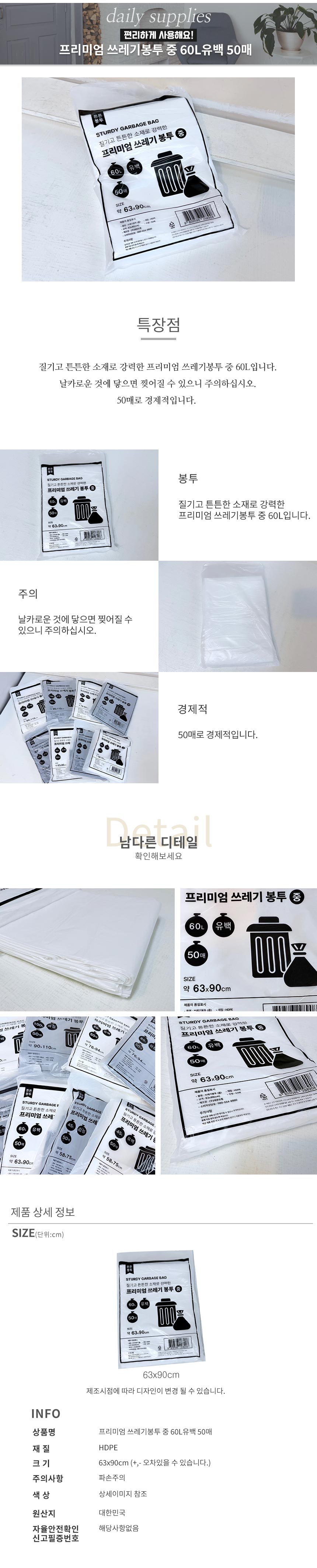 프리미엄 쓰레기봉투 중 60L유백 50매