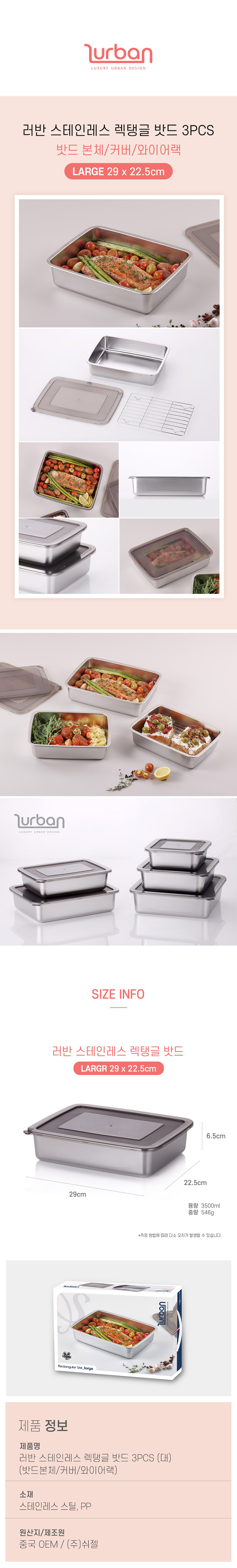 [쉬젤]러반 스테인렌스 렉탱글밧드3PCS-(대)-(본체-29x22.5cm/커버/와이어랙)
