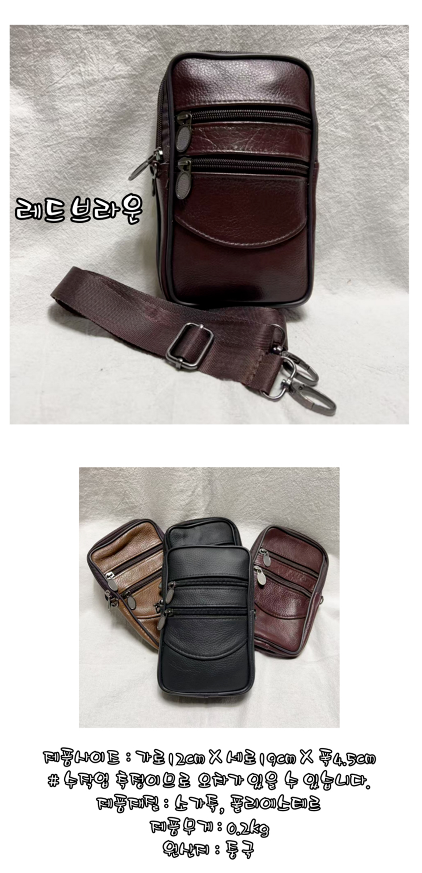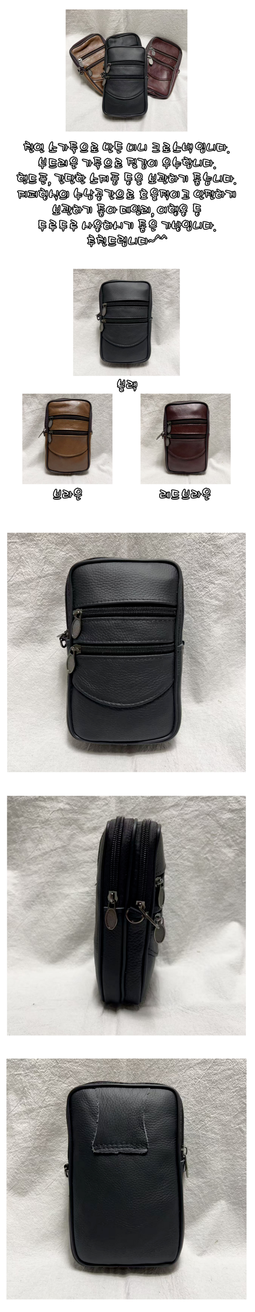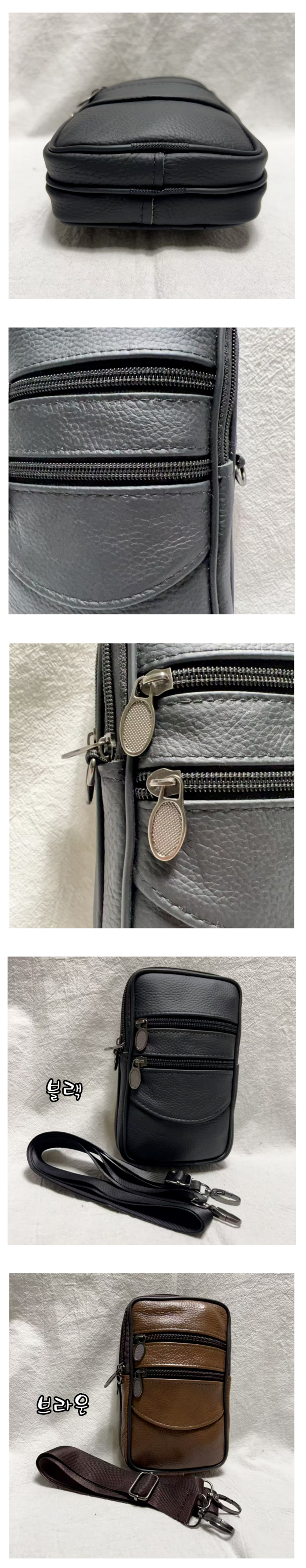 KNPD 소가죽 미니 크로스백 핸드폰가방 지퍼형 수납공간 힙색