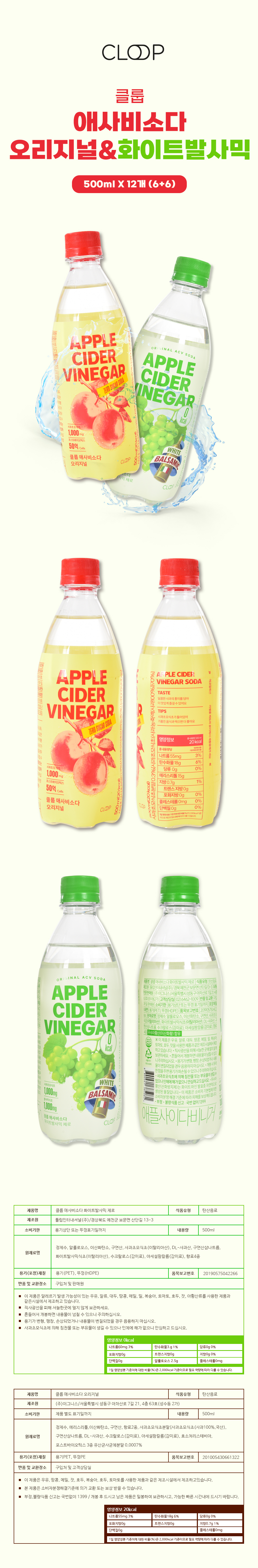M 애사비소다 2종혼합 오리지널500ml 6개 + 화이트발사믹500ml 6개