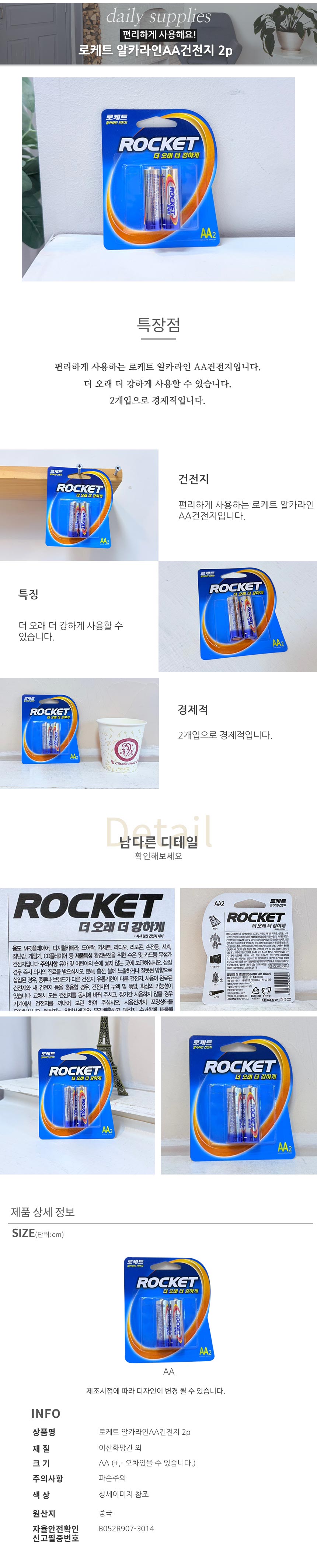로케트 알키라인AA건전지 2p