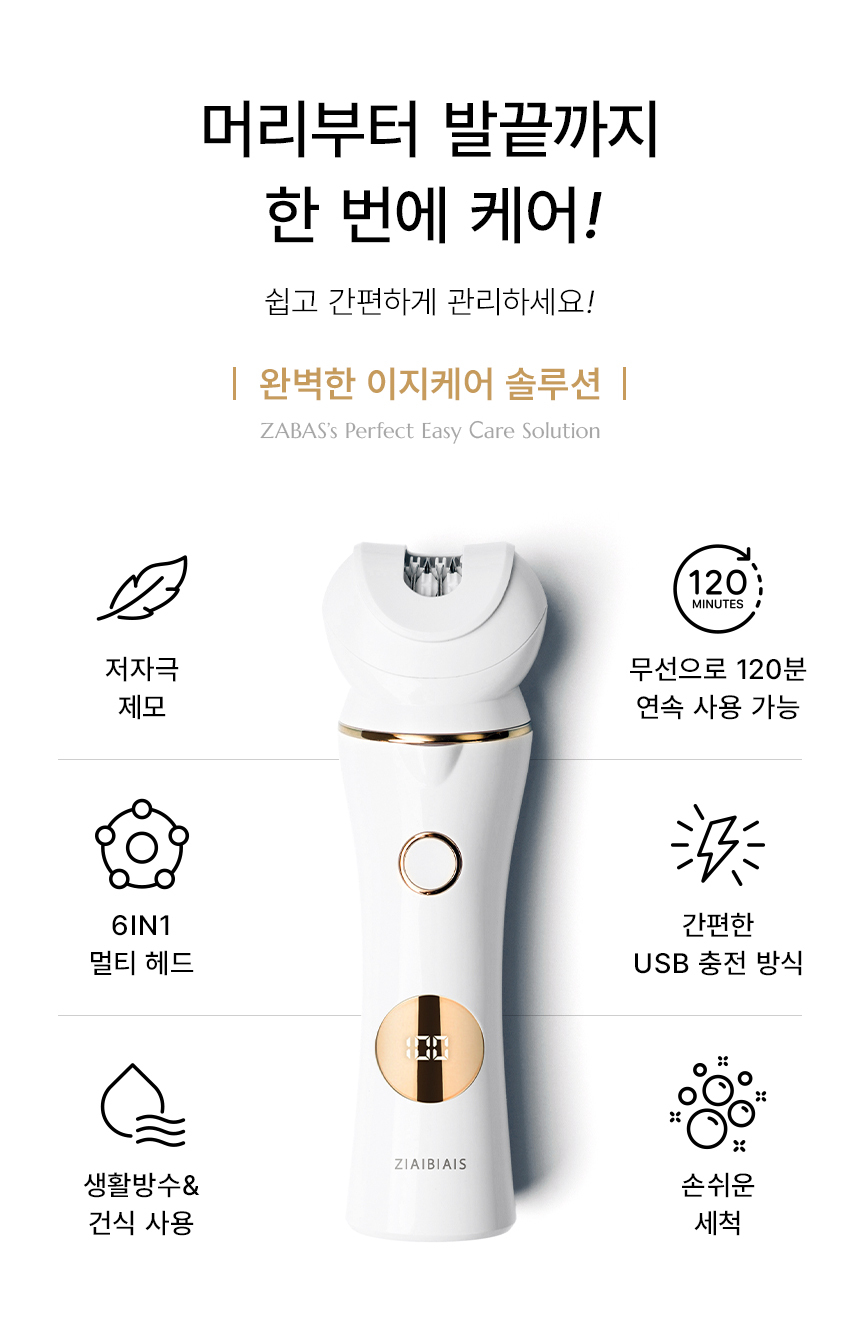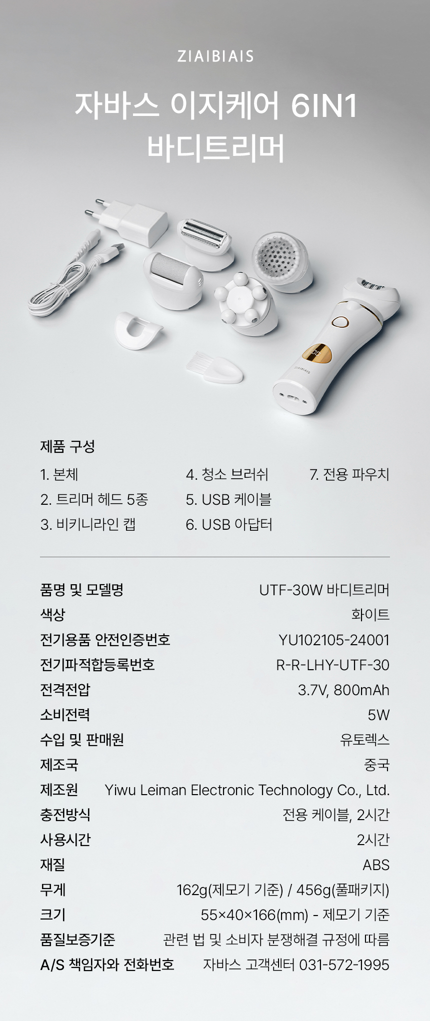 [유토렉스] 이지케어 6in1 바디트리머 제모기 발각질제거 피부마사지 UTF-30W