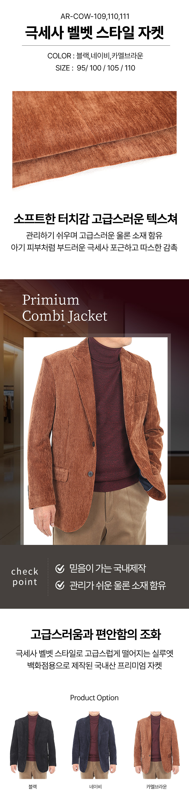 남자 겨울 프리미엄 벨벳 정장 콤비자켓 AR-COW-109