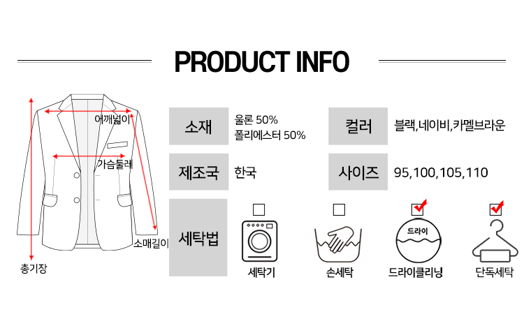 세탁방법 및 취급시 주의사항 제품 상세정보 참고