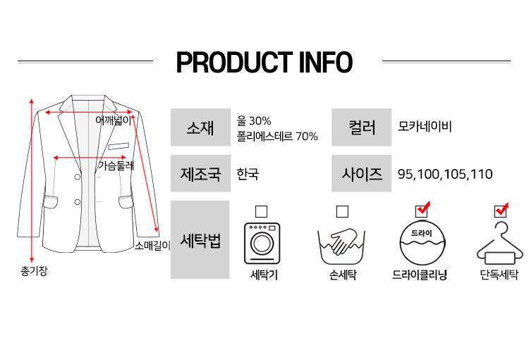 세탁방법 및 취급시 주의사항 제품 상세정보 참고
