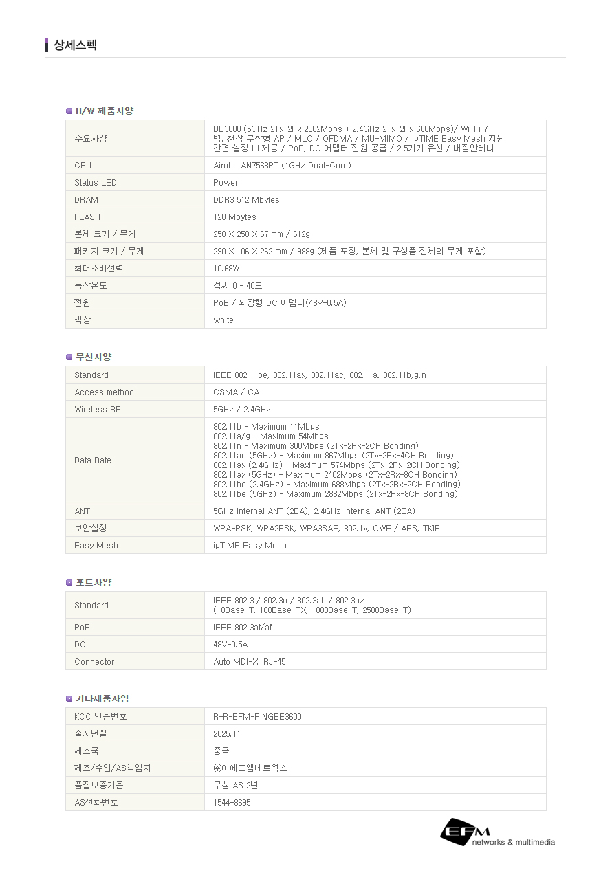 [ipTIME] 와이파이7 벽천장 설치형 확장기 증폭기 2.5기가 이지메시지원 [Ring-BE3600 PLUS]