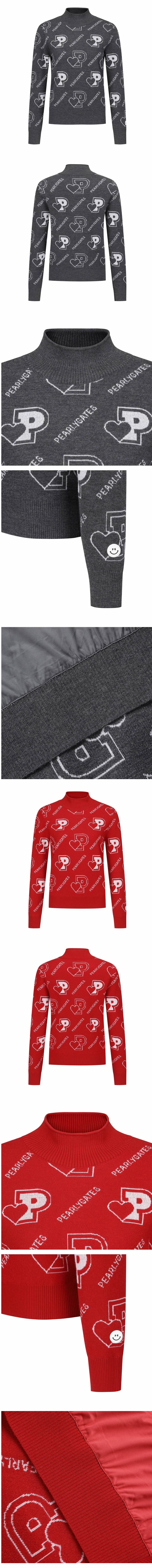 [파리게이츠] 여성 하트 심볼 자카드 하이넥 니트 521E4SR271