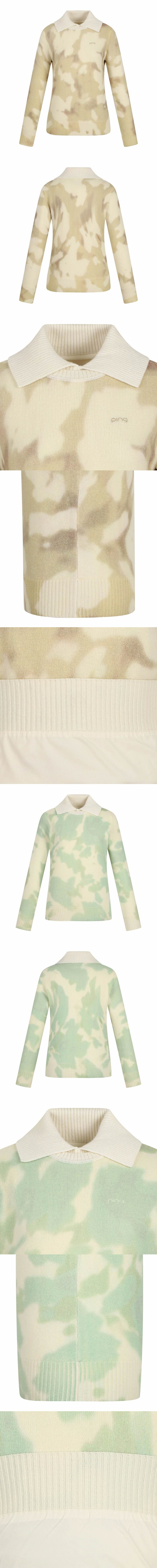[핑] 여성 카모 프린트 방풍 카라 긴팔 니트 121E4SR352