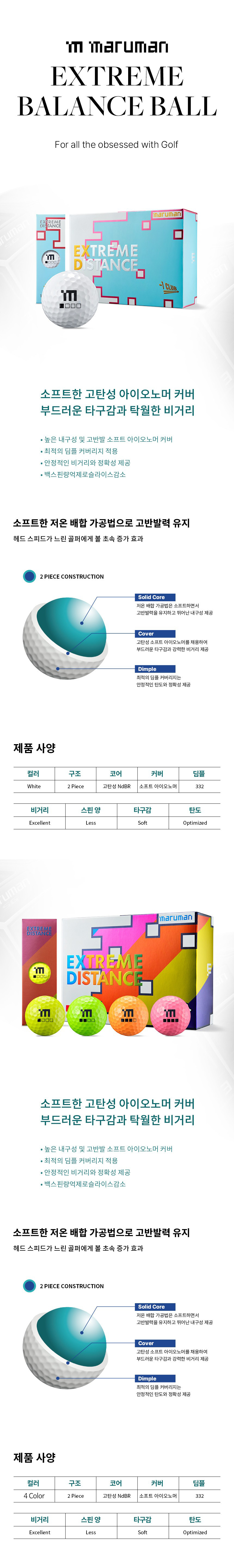 마루망 익스트림 디스턴스 2피스 고반발 골프공 2종