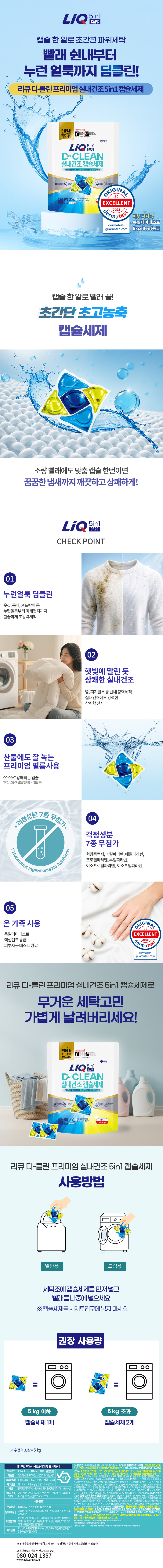 [애경] 리큐 디클린 실내건조 5in1 캡슐세제 30개입 x 6개 드럼 일반 겸용 고농축 액체세제