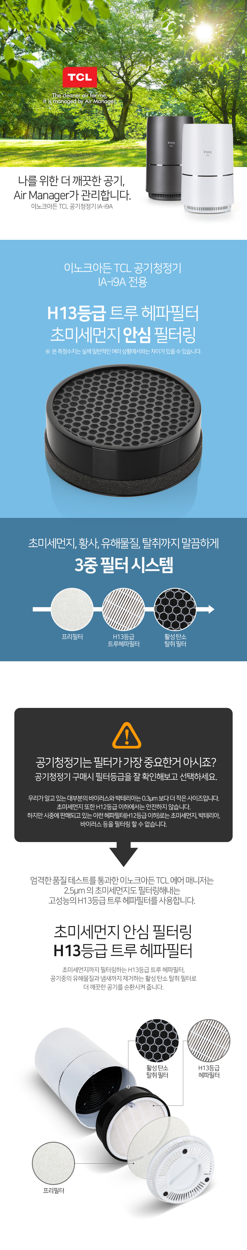 이노크아든 공기청정기 TCL 헤파필터 IA-i9AF