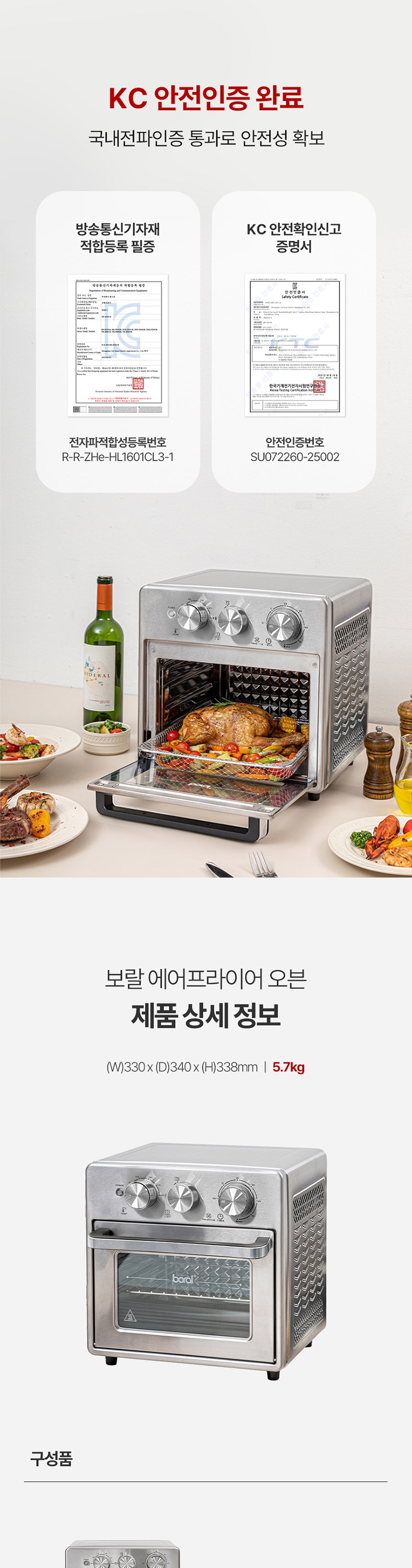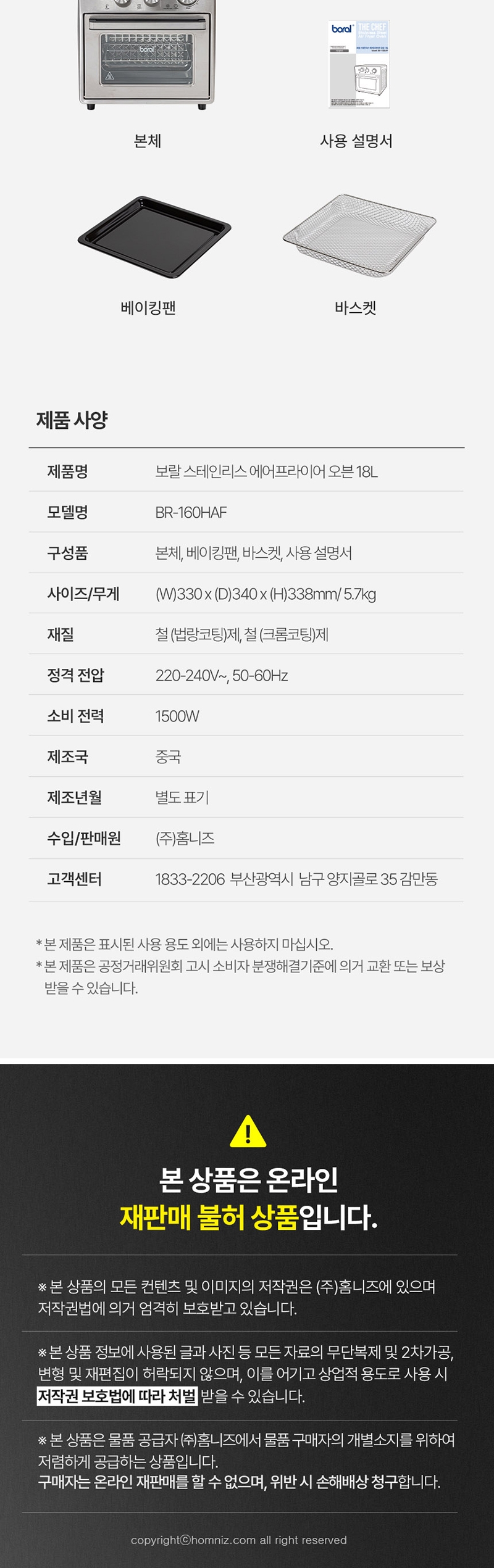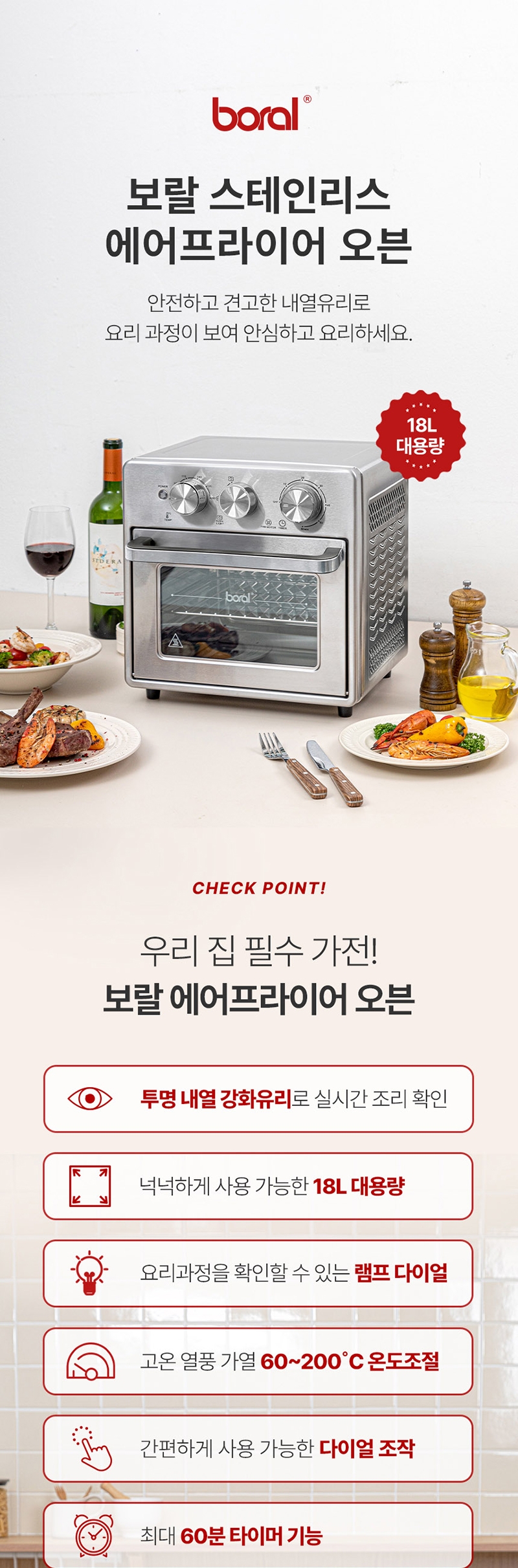 보랄 스테인리스 에어프라이어 오븐 18L BR-160HAF