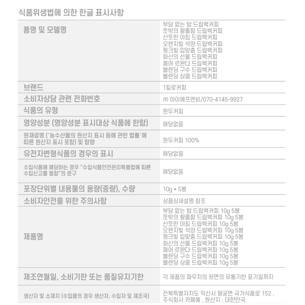 일킬로(1킬로)커피 드립백 커피 10g 5개입 6종 골라담기 구성