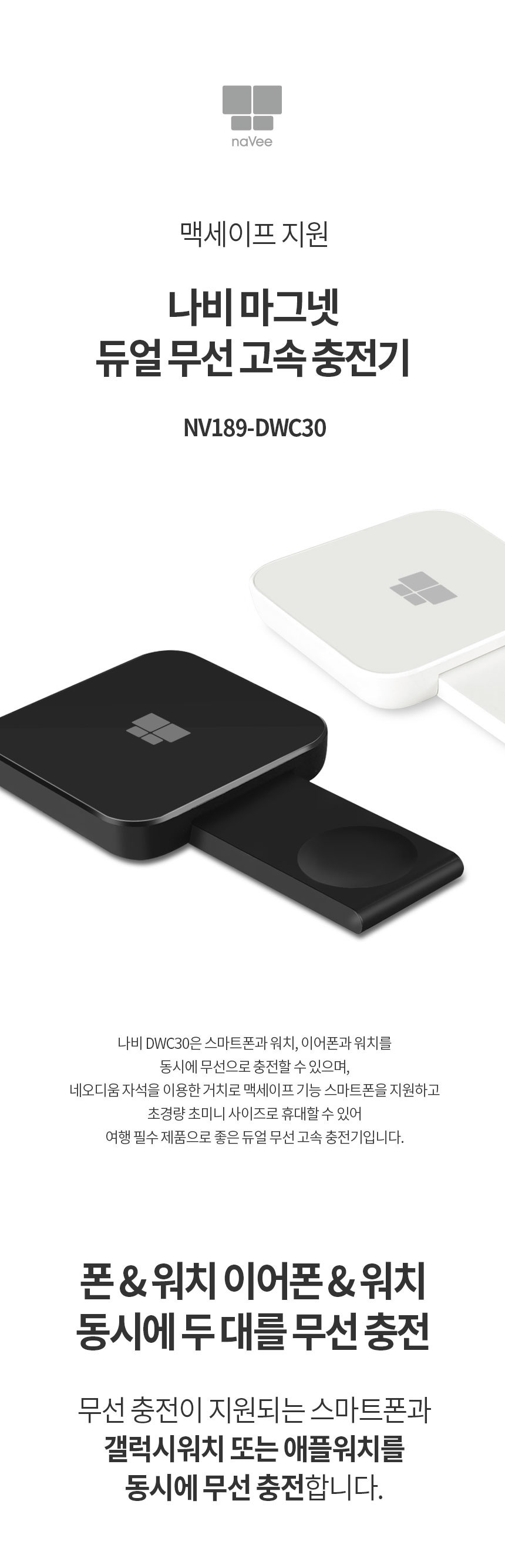 나비 NV189-DWC30 마그넷 듀얼 무선 고속 충전기