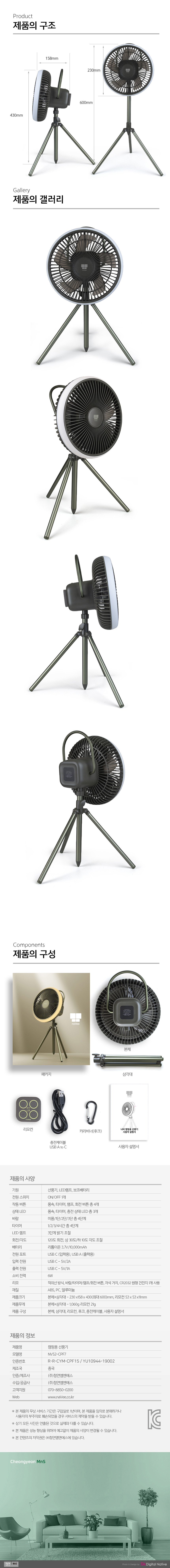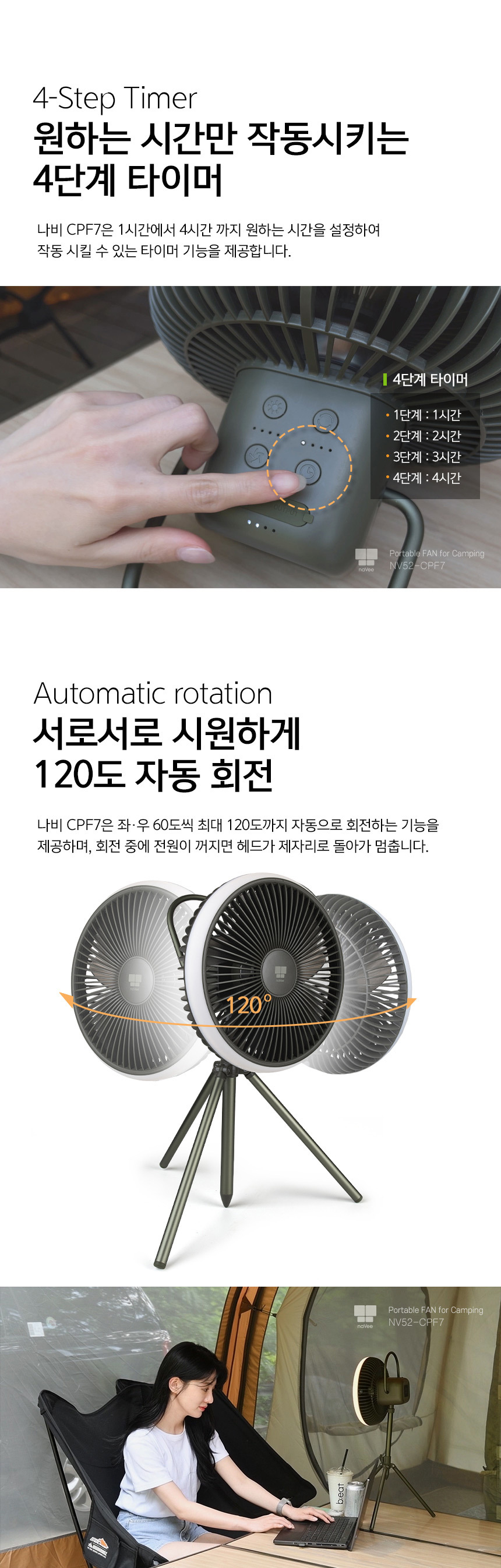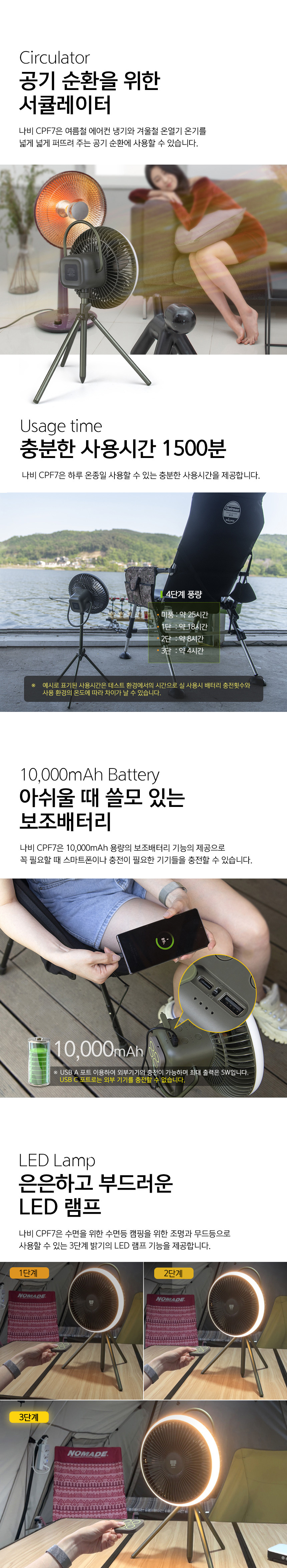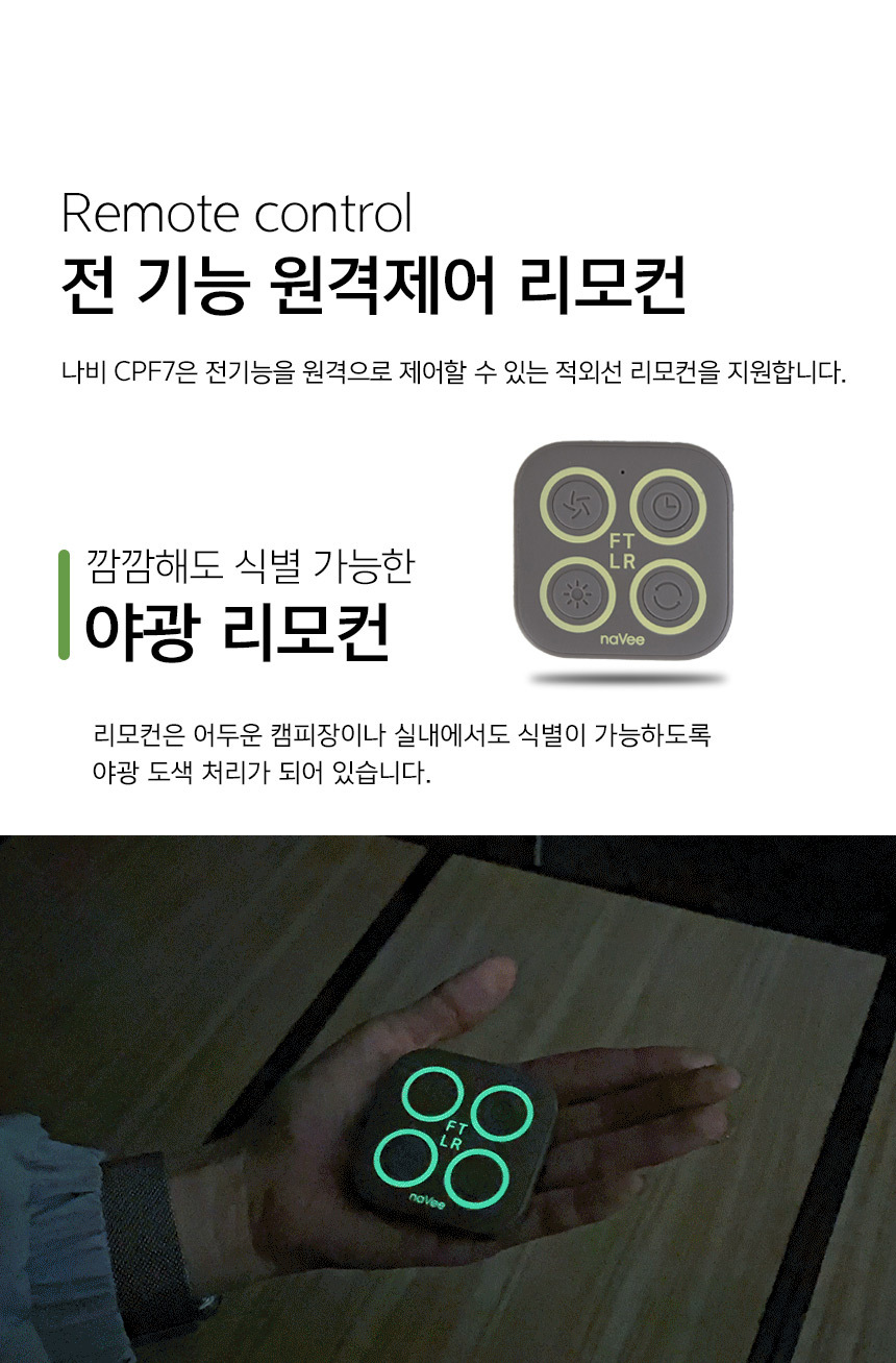 나비 NV52-CPF7 캠핑 무선선풍기 보조배터리 저소음 5엽날개 LED 램프 리모컨