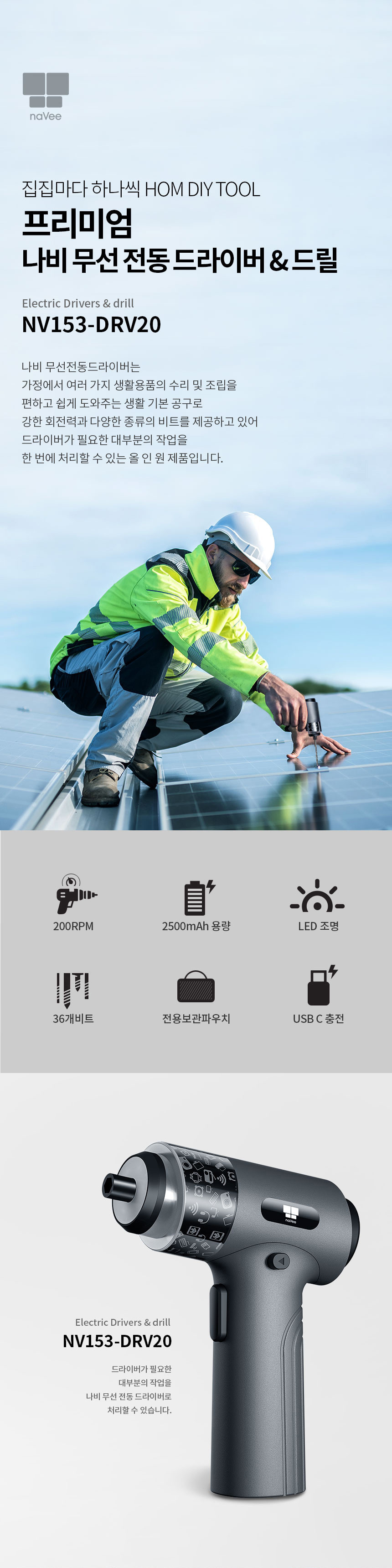 나비 NV153-DRV20 미니 소형 전동 충전 드라이버 드릴 세트 가정용 공구