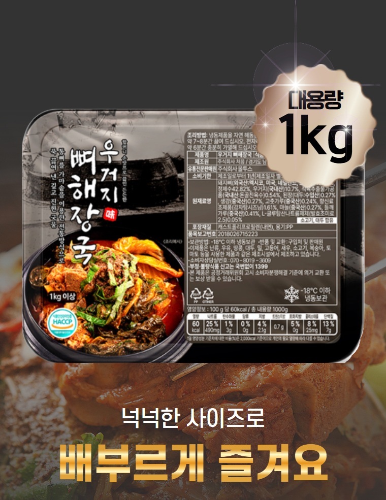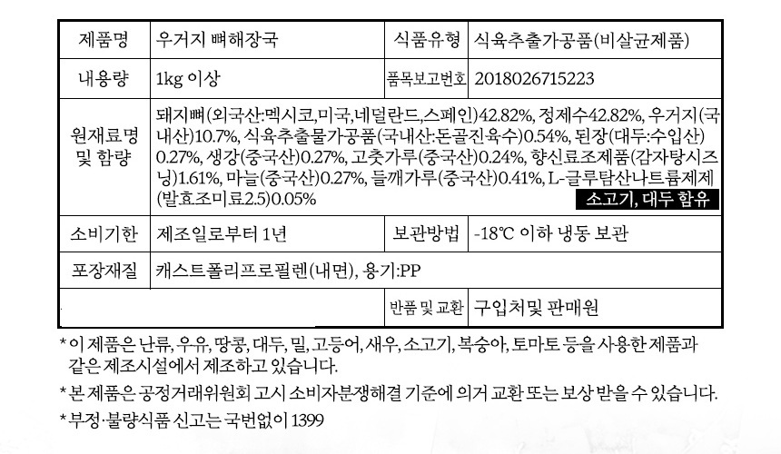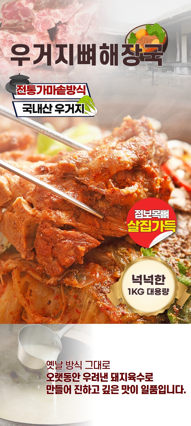 전통가마솥방식 점보 목뼈 우거지 뼈해장국 1kg x 2팩