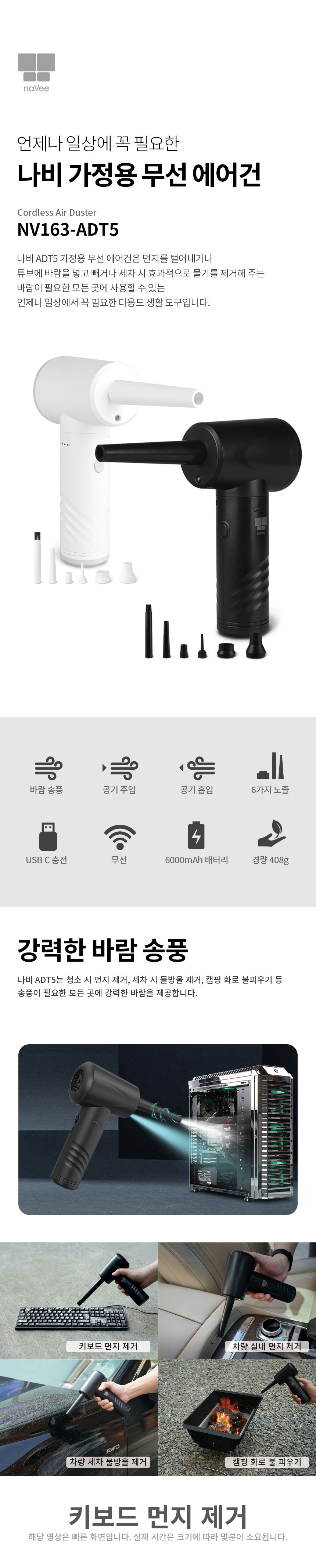 나비 NV163-ADT5 에어건 초강력 무선 캠핑 튜브 미니 컴퓨터 먼지청소 공기주입