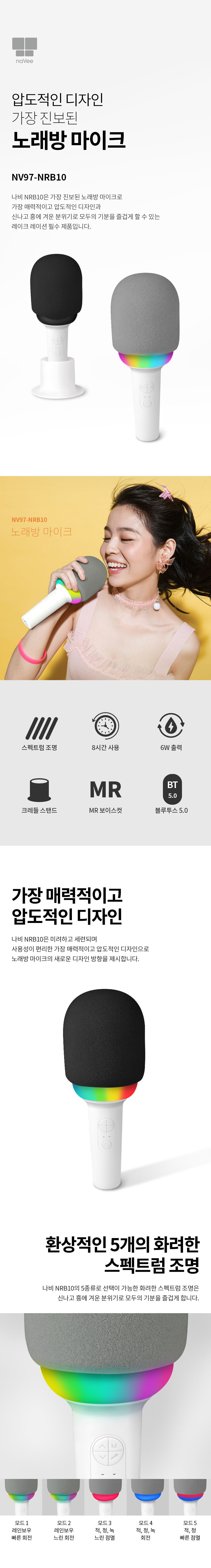 나비 NV97-NRB10 블루투스 노래방 마이크 스피커 에코 LED 조명 음성변조
