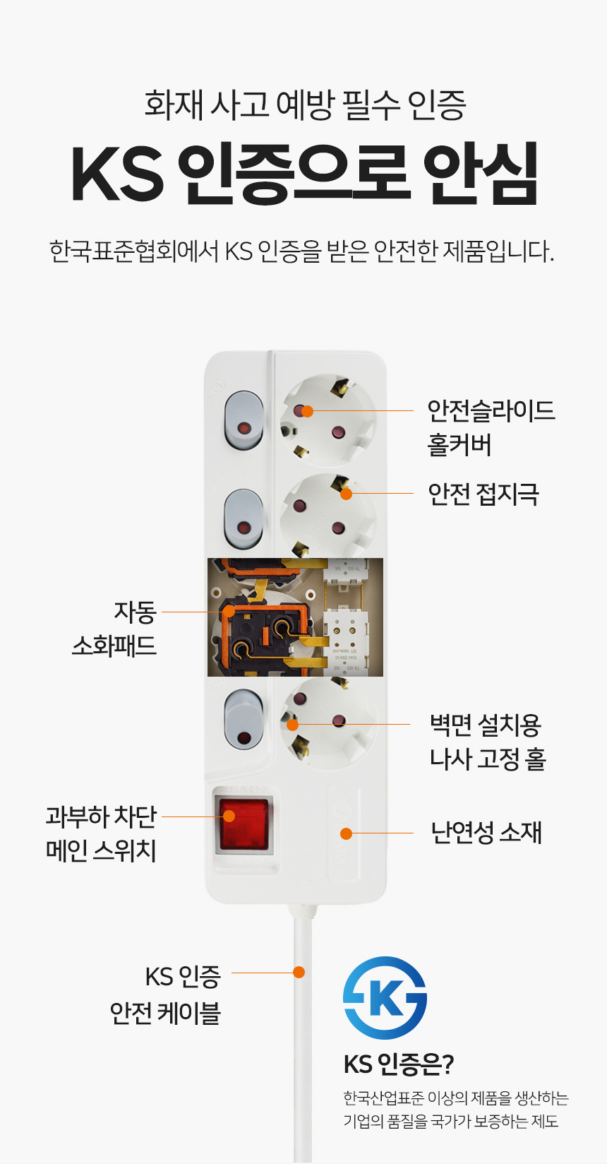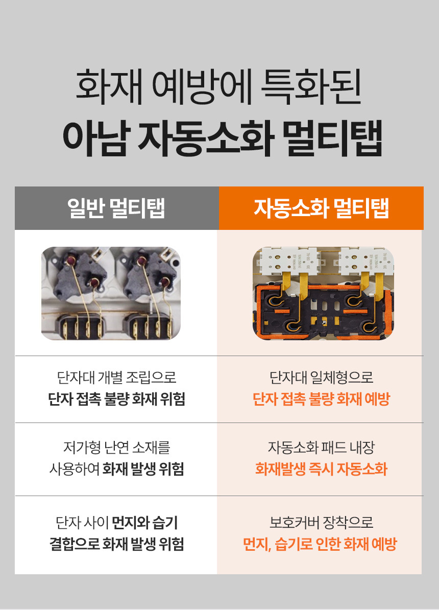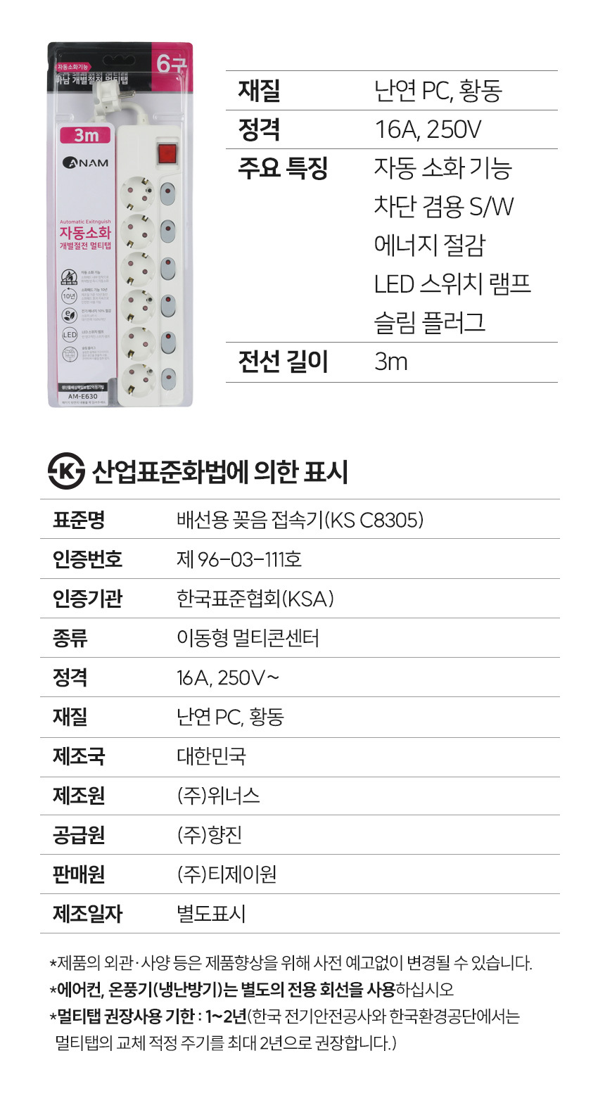 아남 국내생산 자동소화 화재방지 개별스위치 멀티탭 6구 3미터 AM-E630