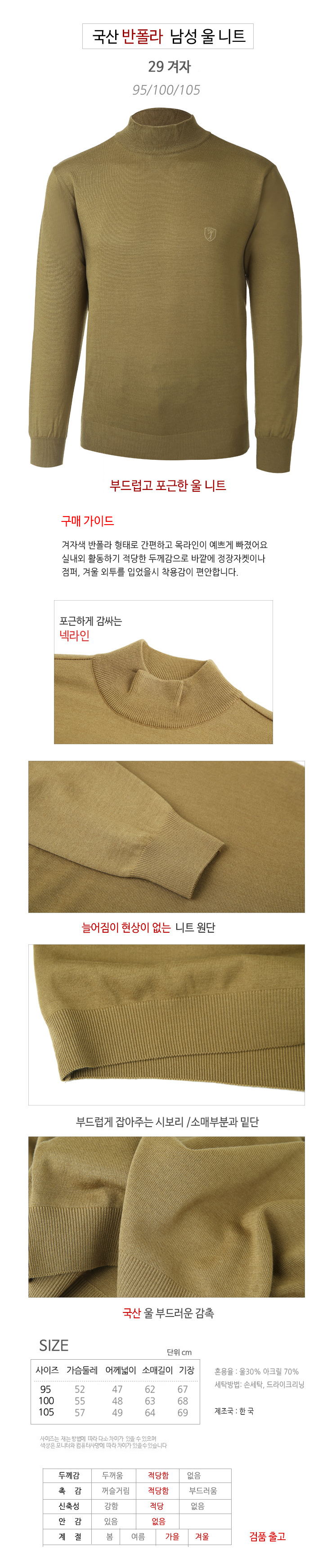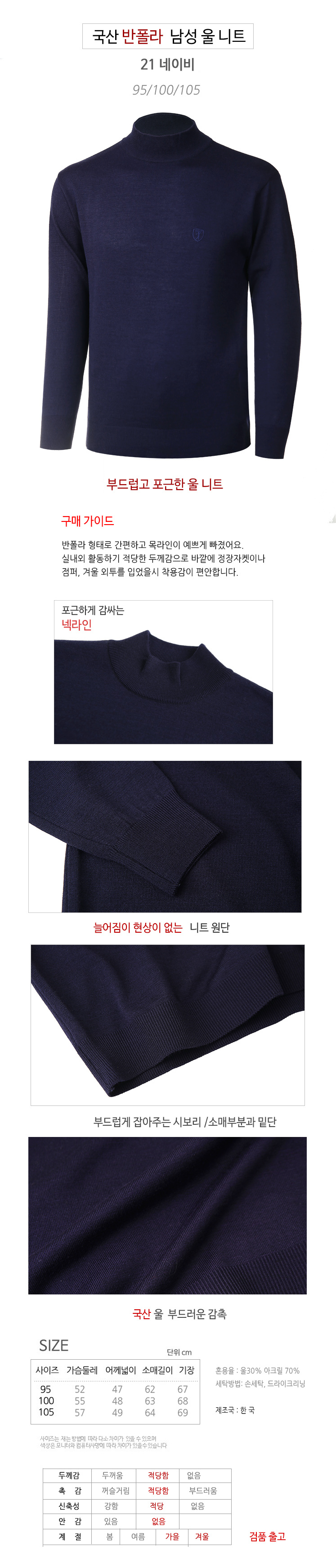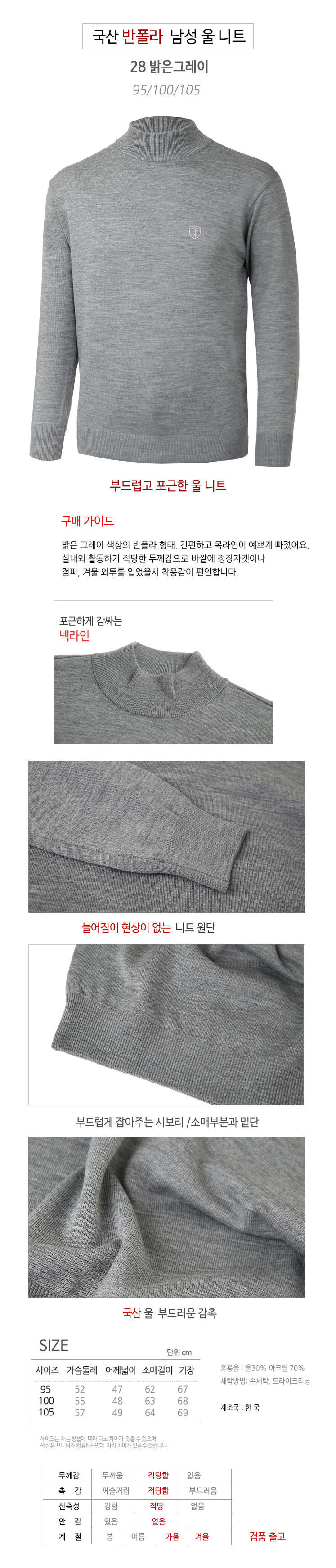 남자 국산 고급 울 반폴라 니트 GL-KN-21