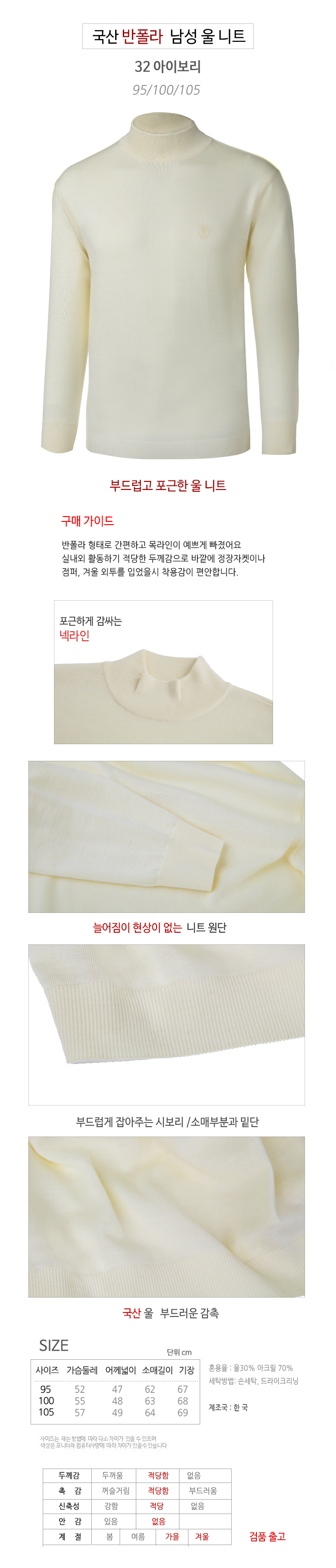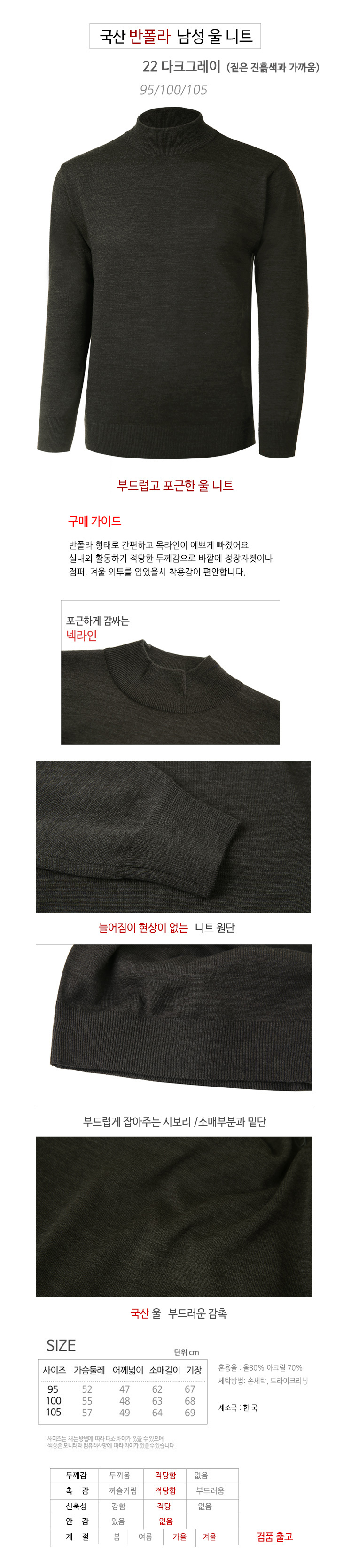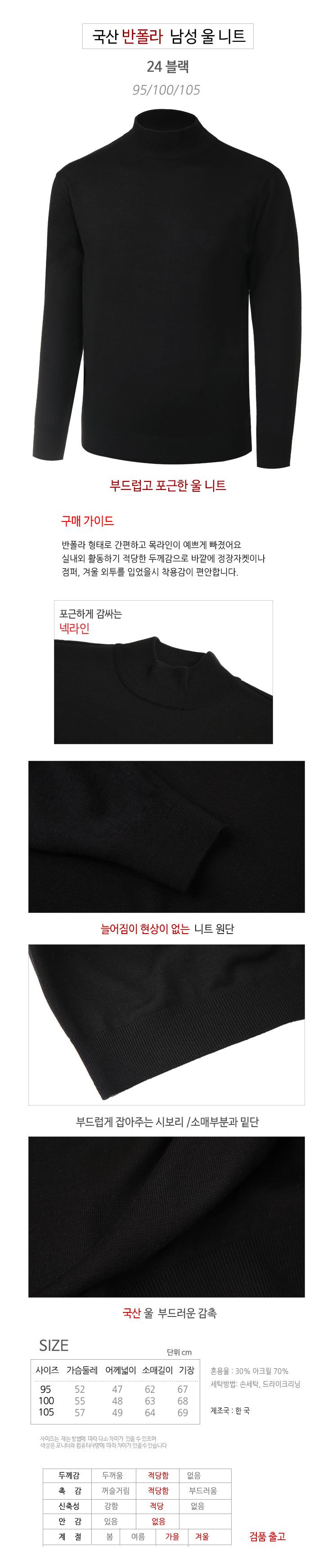 남자 국산 고급 울 반폴라 니트 GL-KN-21