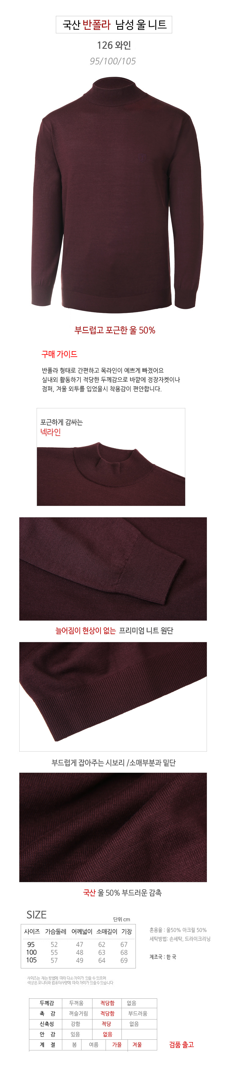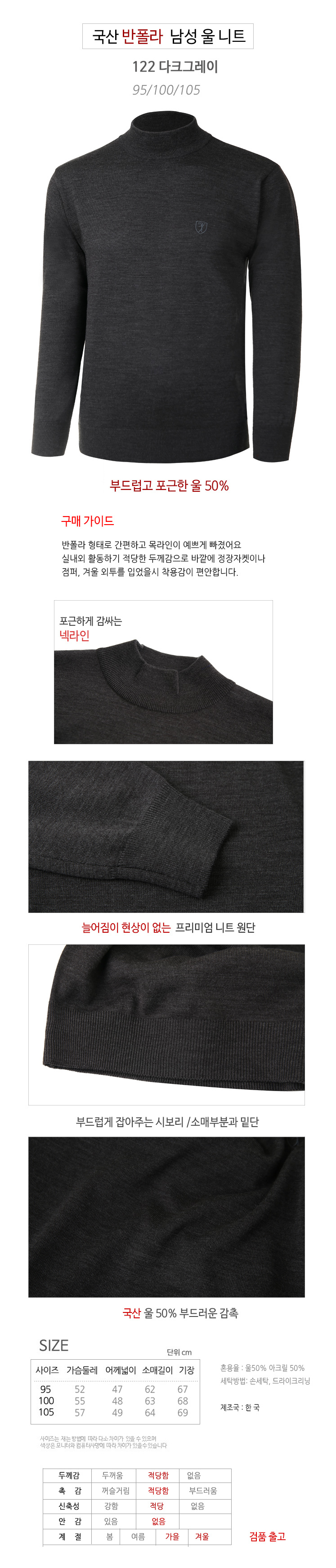 남자 국산 프리미엄 울 반폴라 니트 GL-KN-121