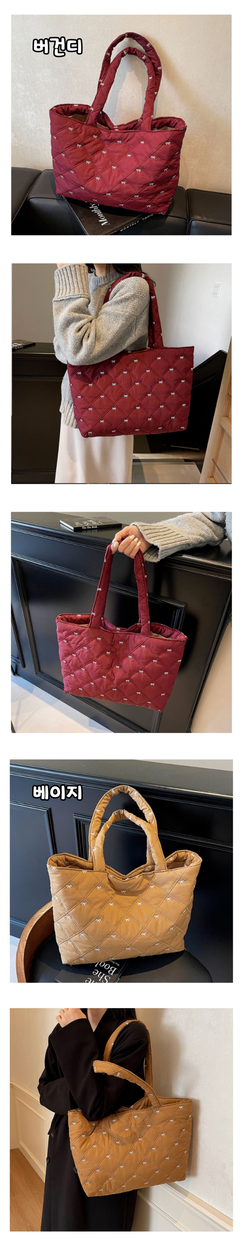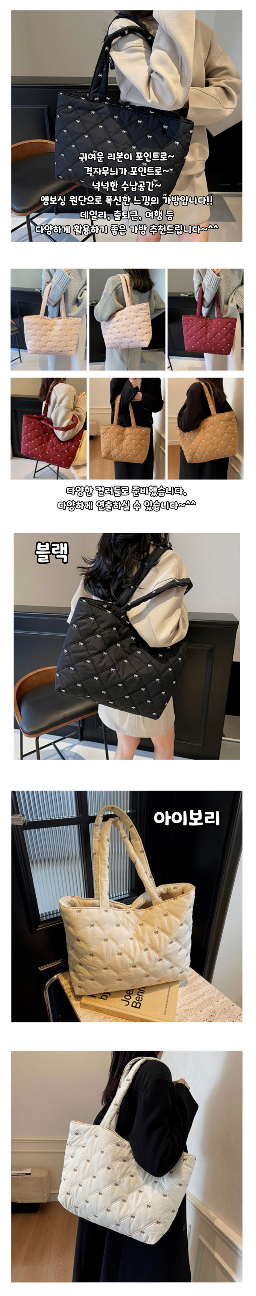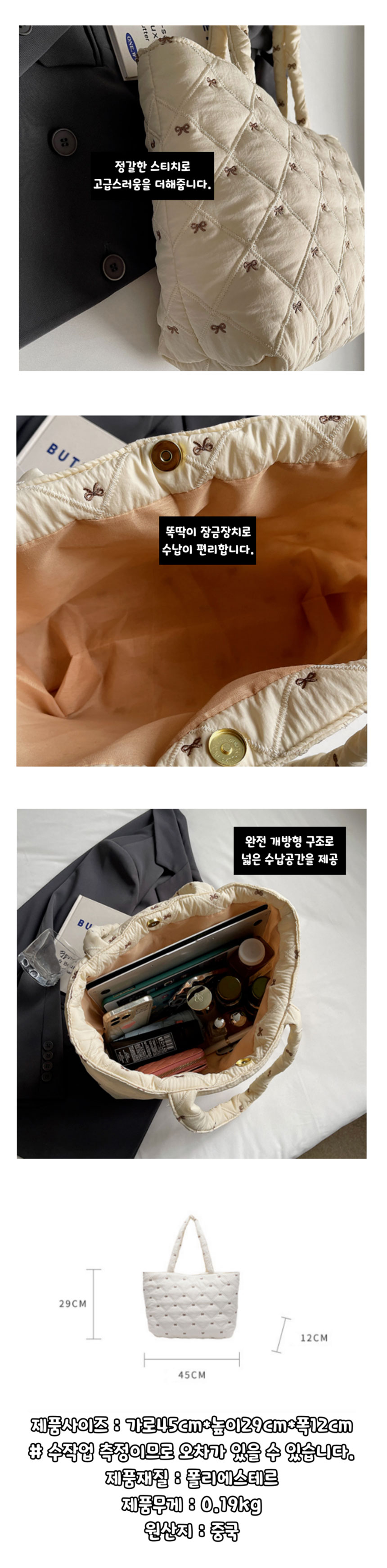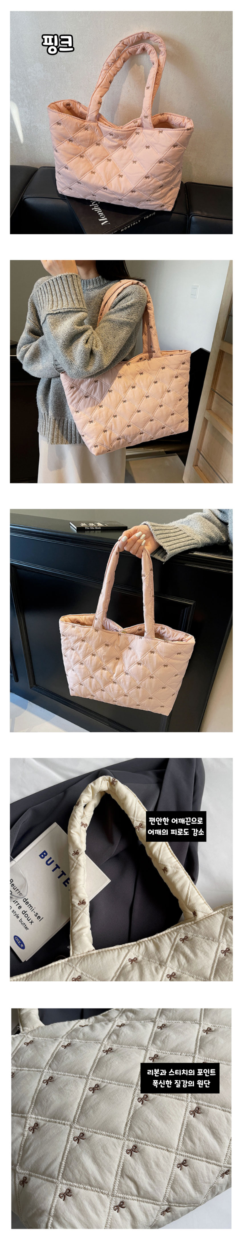 KNPD 엠보싱 숄더백 리본 포인트 누빔 구름가방