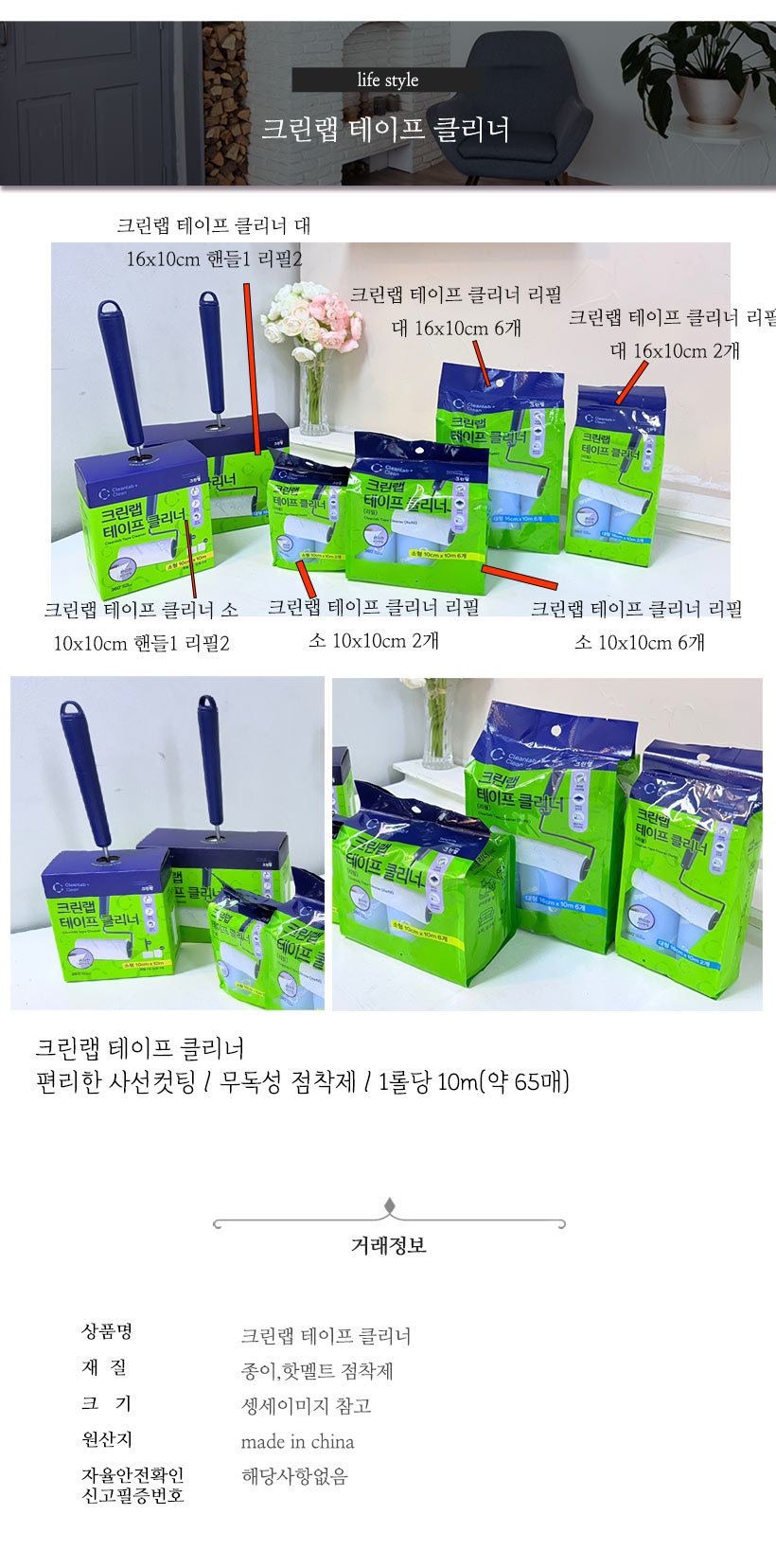 크린랩 테이프 클리너 대 16x10cm 핸들1 리필2