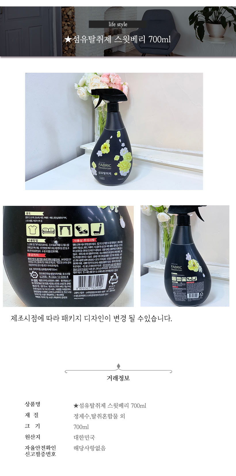 섬유탈취제 스윗베리 700ml