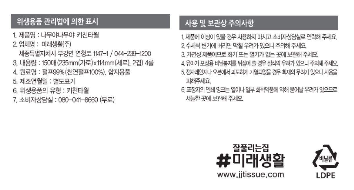 나무야나무야 키친타올 150매x4롤