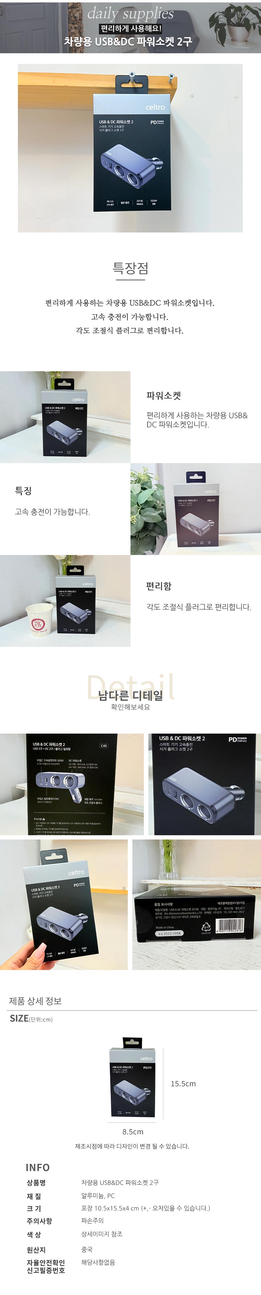 차량용 USB&DC 파워소켓 2구