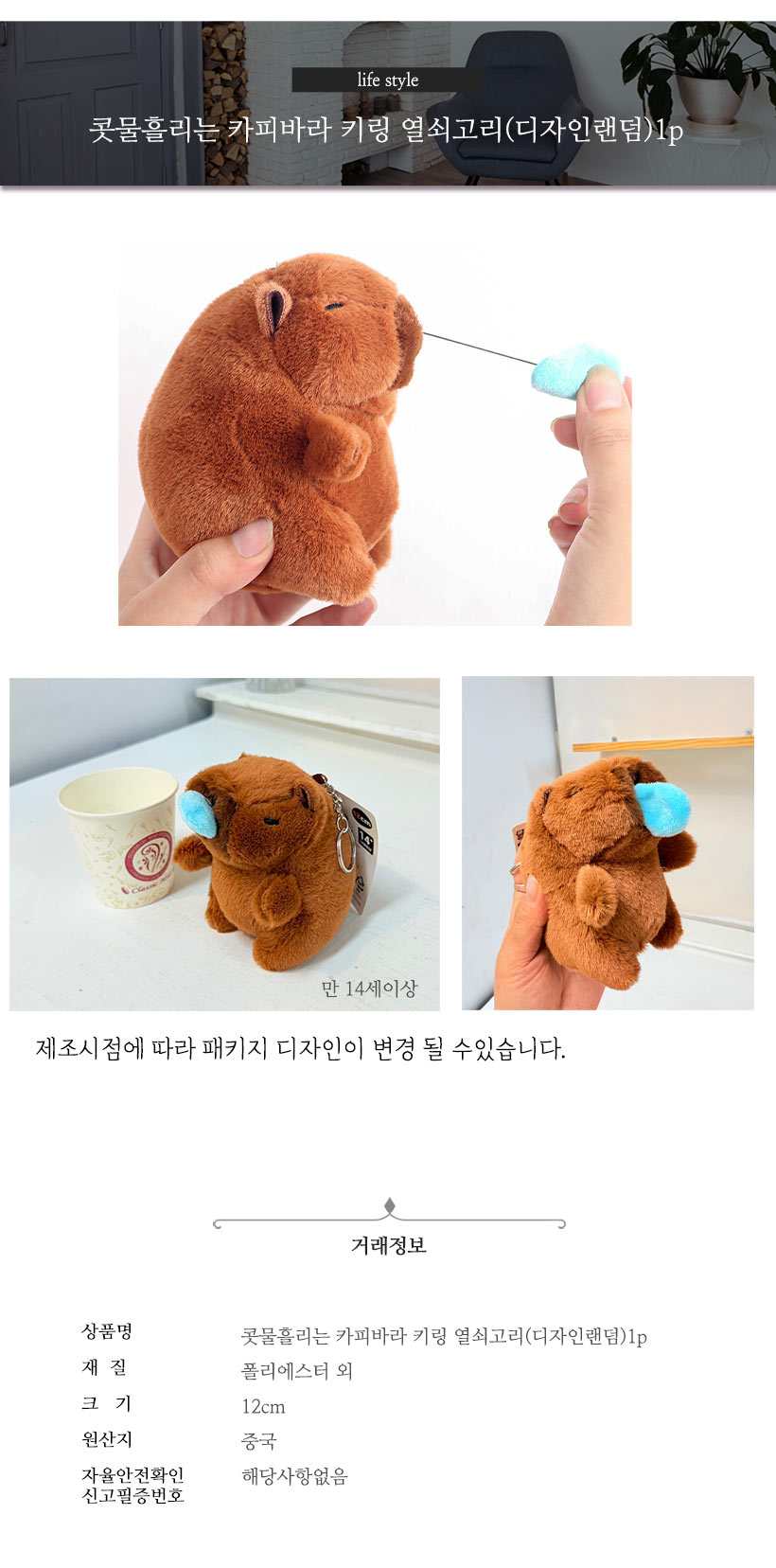 콧물흘리는 카피바라 키링 열쇠고리(디자인랜덤)1p