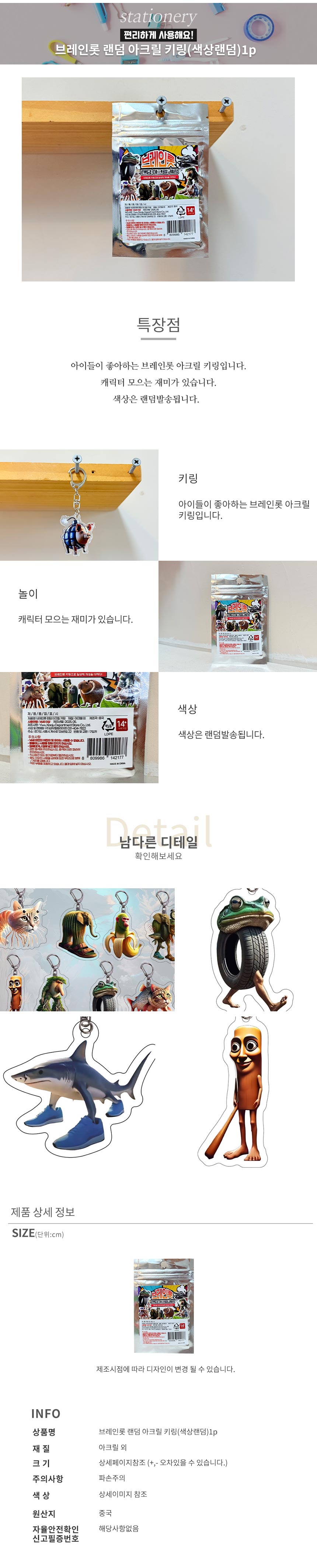 브레인롯 랜덤 아크릴 키링(색상랜덤)1p