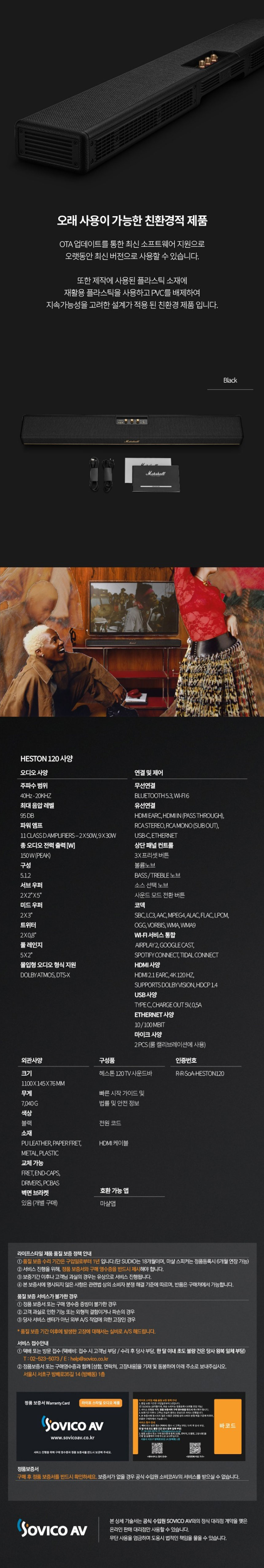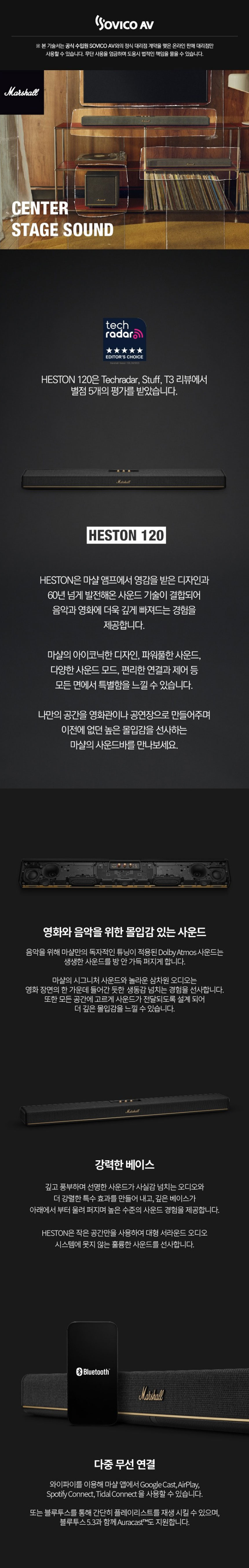 마샬 Marshall HESTON 120 헤스톤120 블루투스 사운드바 소비코 국내 정품