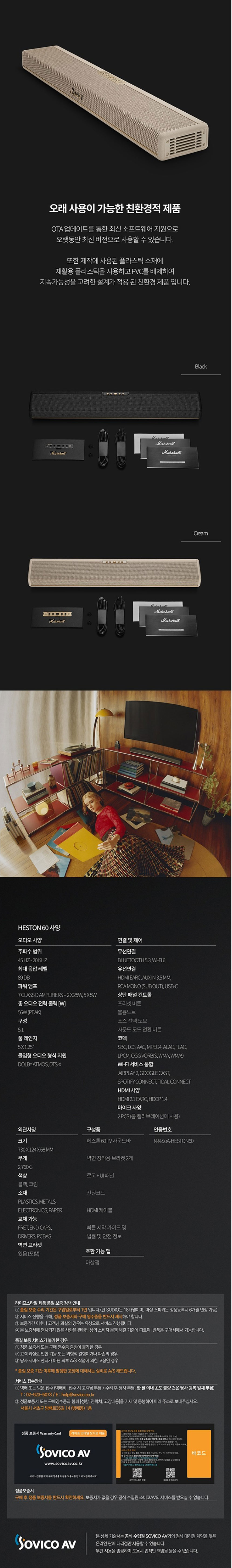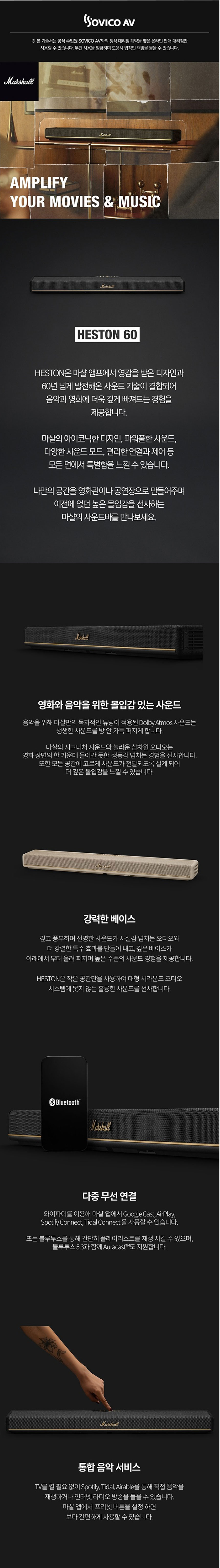 마샬 Marshall HESTON 60 헤스톤60 블루투스 사운드바 소비코 국내 정품