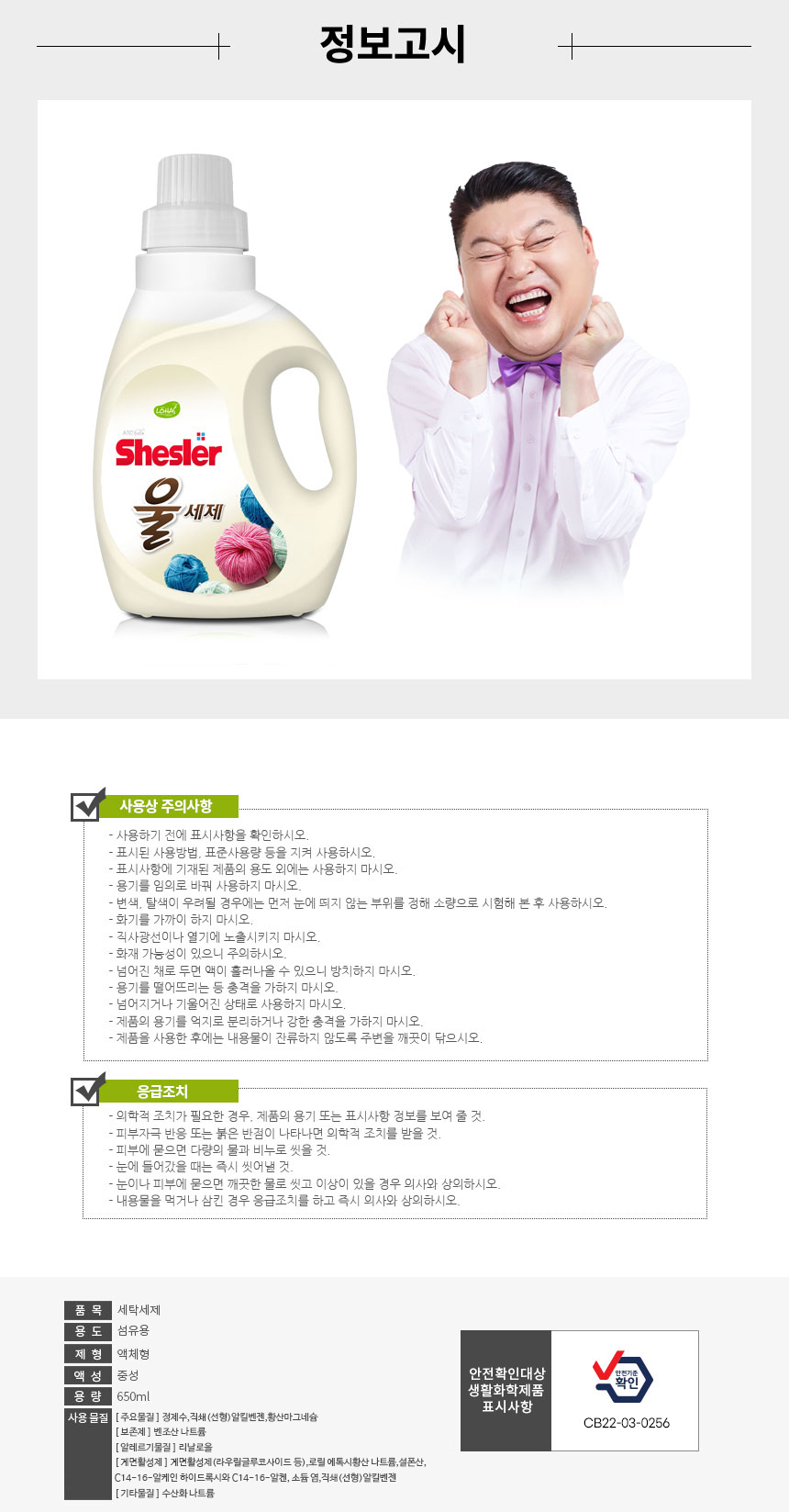 강호동의 쉬슬러 액상 세제 울전용 650ml 2개+표백 액상 세제 2L 1개