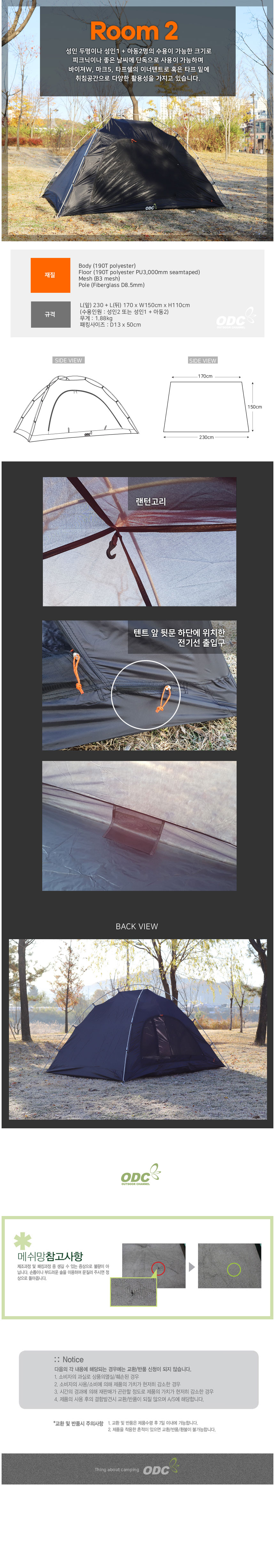 ODC 일체형 2~3인용 낚시 공원 텐트 룸2 블랙