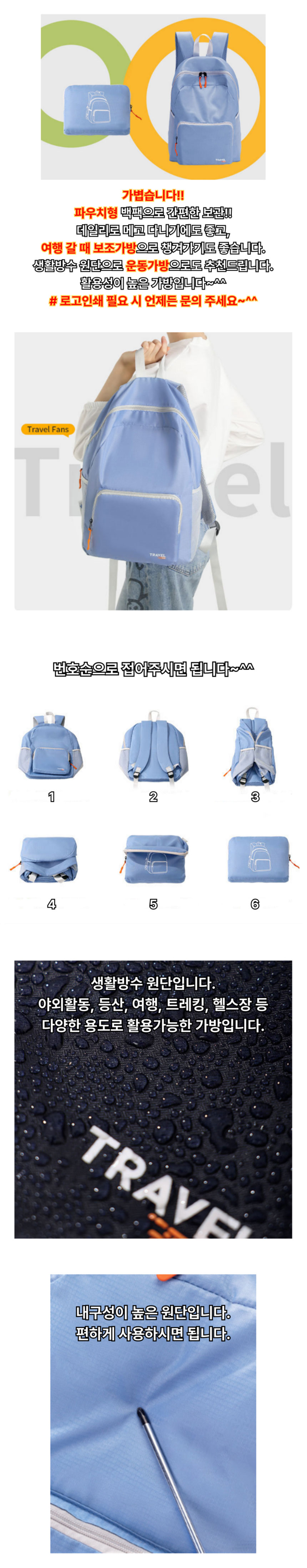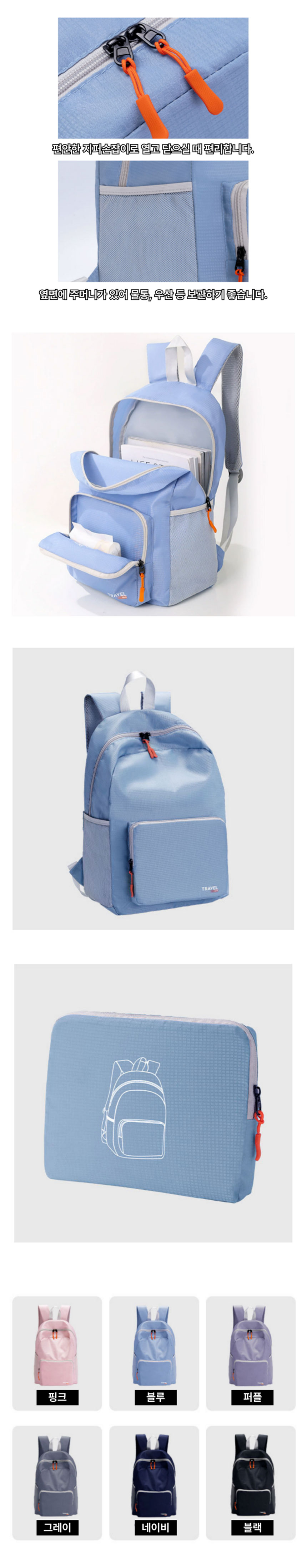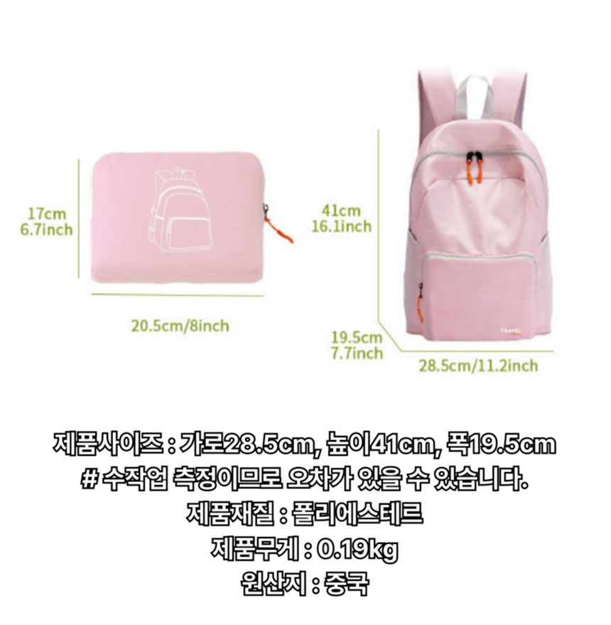 KNPD 파우치형 경량 백팩 접이식 보조가방
