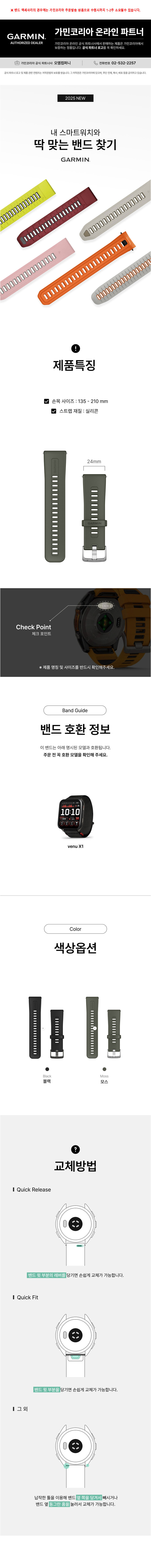 가민 베뉴 X1 퀵릴리즈 24mm 실리콘 스트랩 밴드