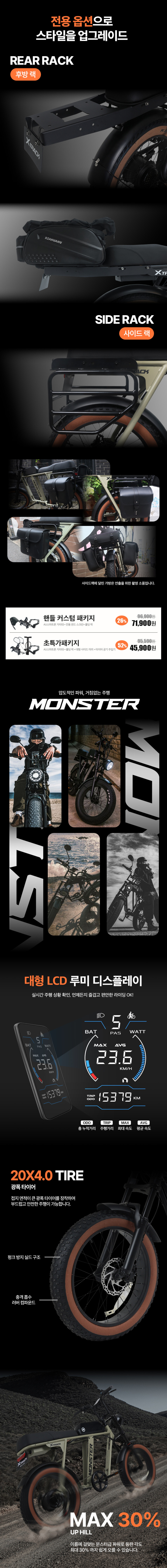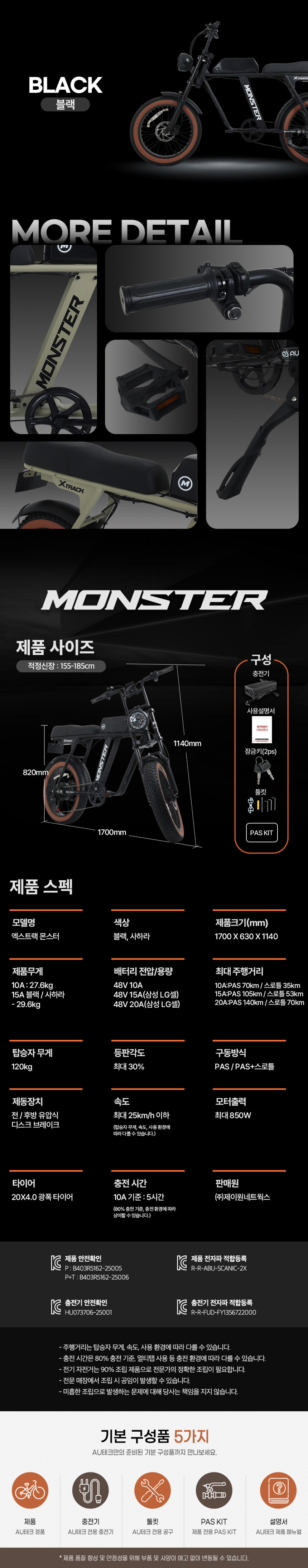 AU테크 엑스트랙 몬스터 팻바이크 자토바이 850W PAS 스로틀 전기자전거 48V 10Ah 블랙